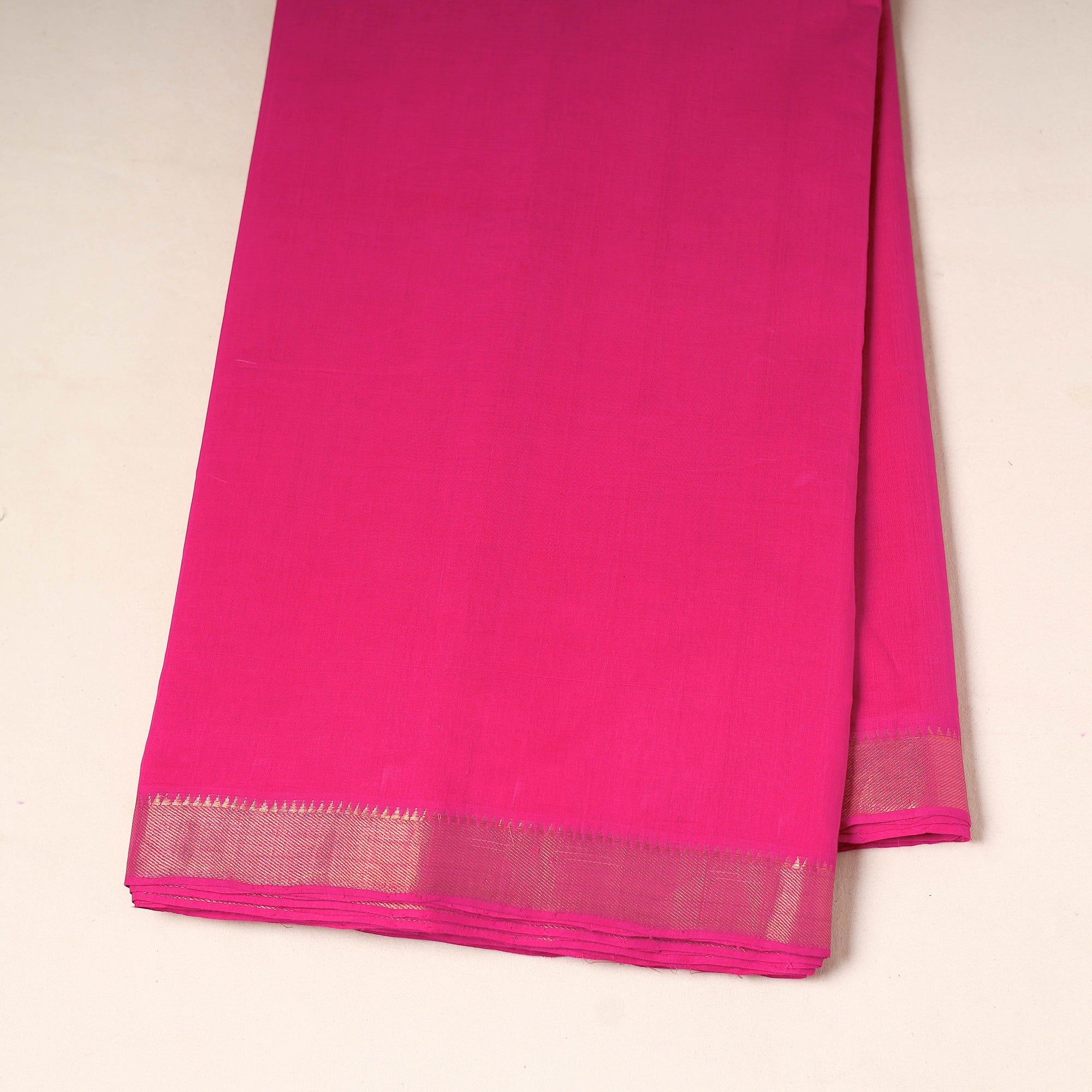 Fine quality pink handloom mangalagiri cotton fabric from Andhra Pradesh with a beautiful two-sided zari border. Soft, breathable, and comfortable, this fabric is ideal for creating elegant clothing and home decor items. The understated zari border lends it a charming appeal, making it a timeless choice for those who appreciate traditional yet stylish textiles.