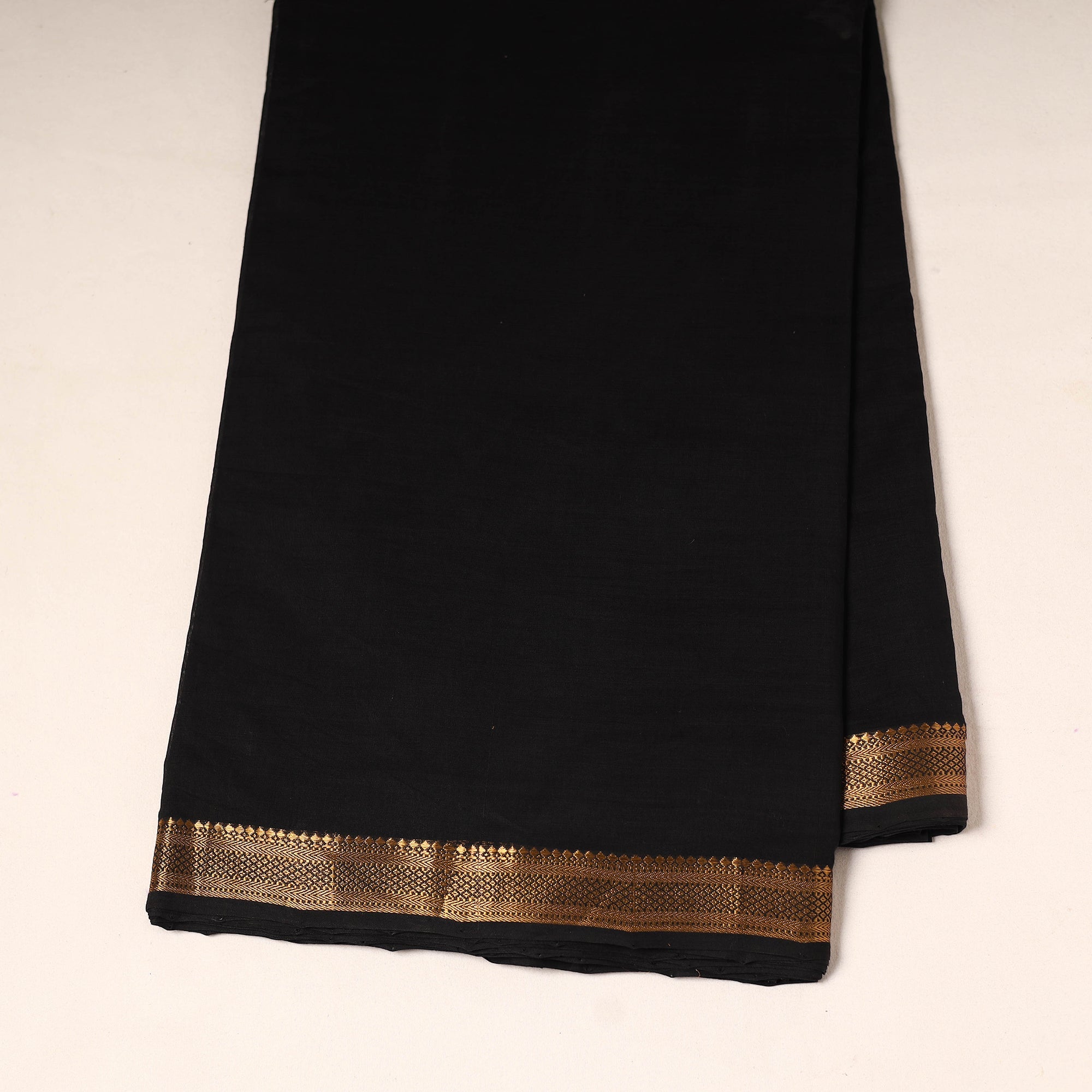 Fine quality black handloom mangalagiri cotton fabric from Andhra Pradesh with a beautiful two-sided zari border. Soft, breathable, and comfortable, this fabric is ideal for creating elegant clothing and home decor items. The understated zari border lends it a charming appeal, making it a timeless choice for those who appreciate traditional yet stylish textiles.