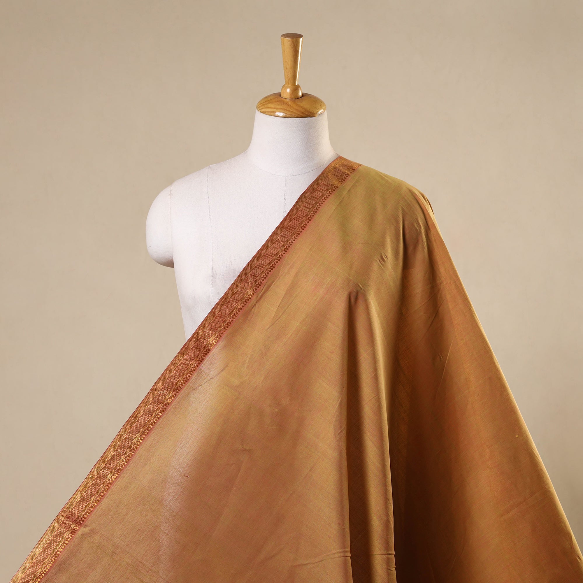 Fine quality brown handloom mangalagiri cotton fabric from Andhra Pradesh with a beautiful two-sided zari border. Soft, breathable, and comfortable, this fabric is ideal for creating elegant clothing and home decor items. The understated zari border lends it a charming appeal, making it a timeless choice for those who appreciate traditional yet stylish textiles.
