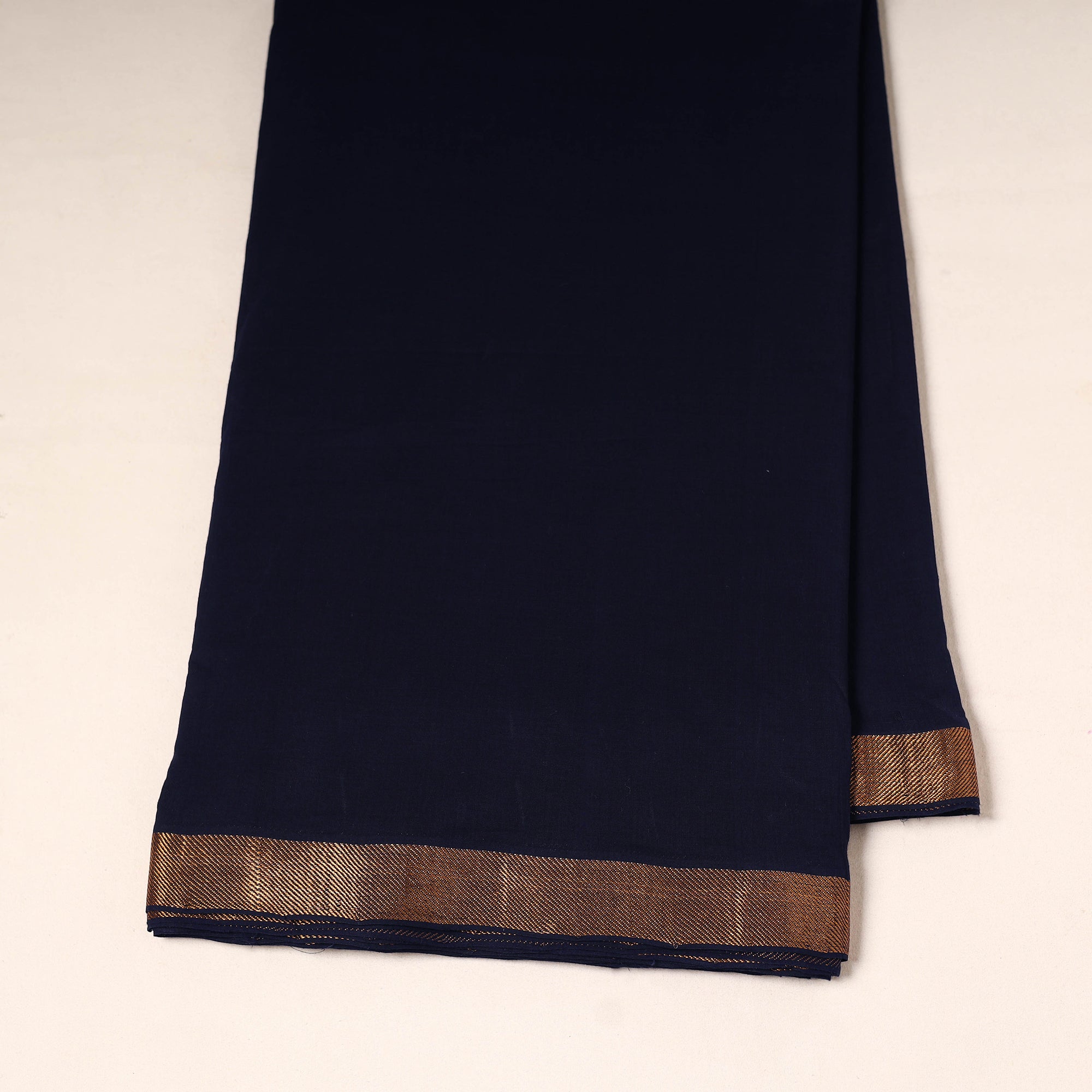 Fine quality blue handloom mangalagiri cotton fabric from Andhra Pradesh with a beautiful two-sided zari border. Soft, breathable, and comfortable, this fabric is ideal for creating elegant clothing and home decor items. The understated zari border lends it a charming appeal, making it a timeless choice for those who appreciate traditional yet stylish textiles.