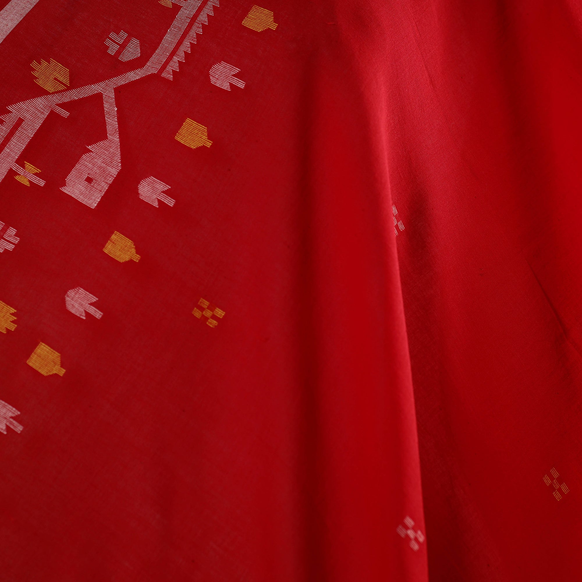 • Red - handloom cotton phulia jamdani fabric 03 - handcrafted