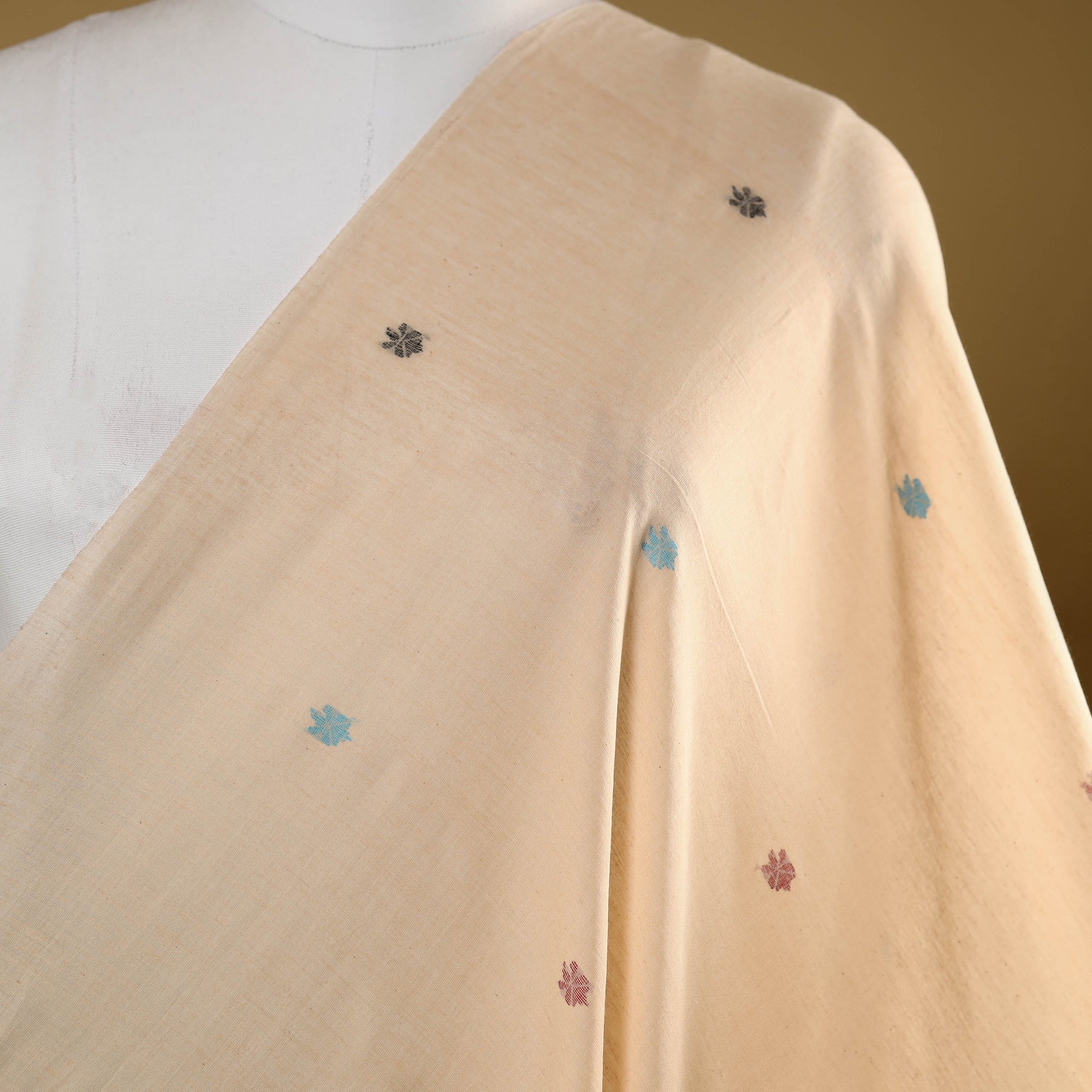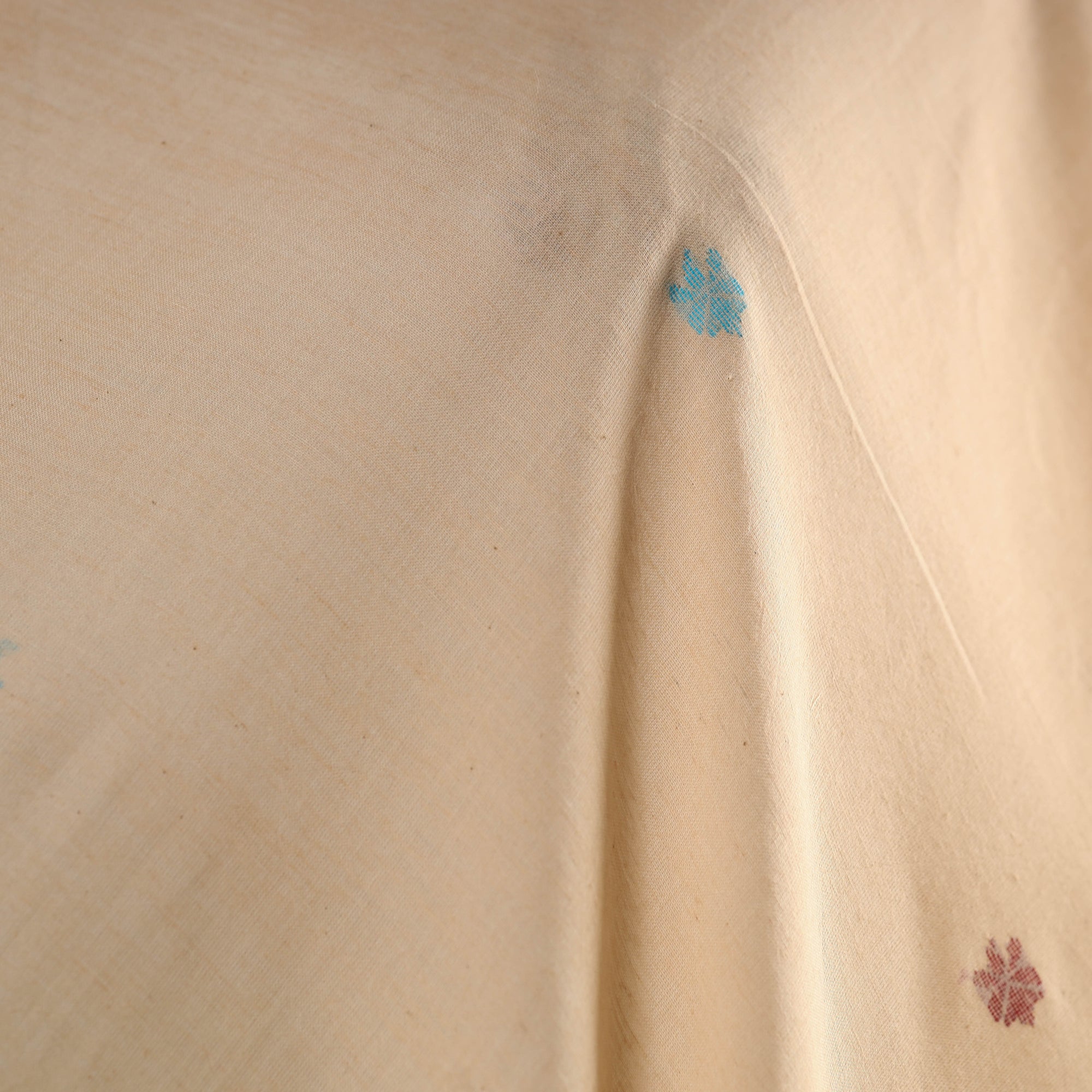 This beige phulia jamdani cotton fabric reflects Bengal’s rich textile heritage. Woven with the intricate weft technique, each piece requires time and patience to weave. Celebrated for its delicate motifs and elegance, the fabric is ideal for sarees, dupattas, kurtas, or even refined home décor accents.