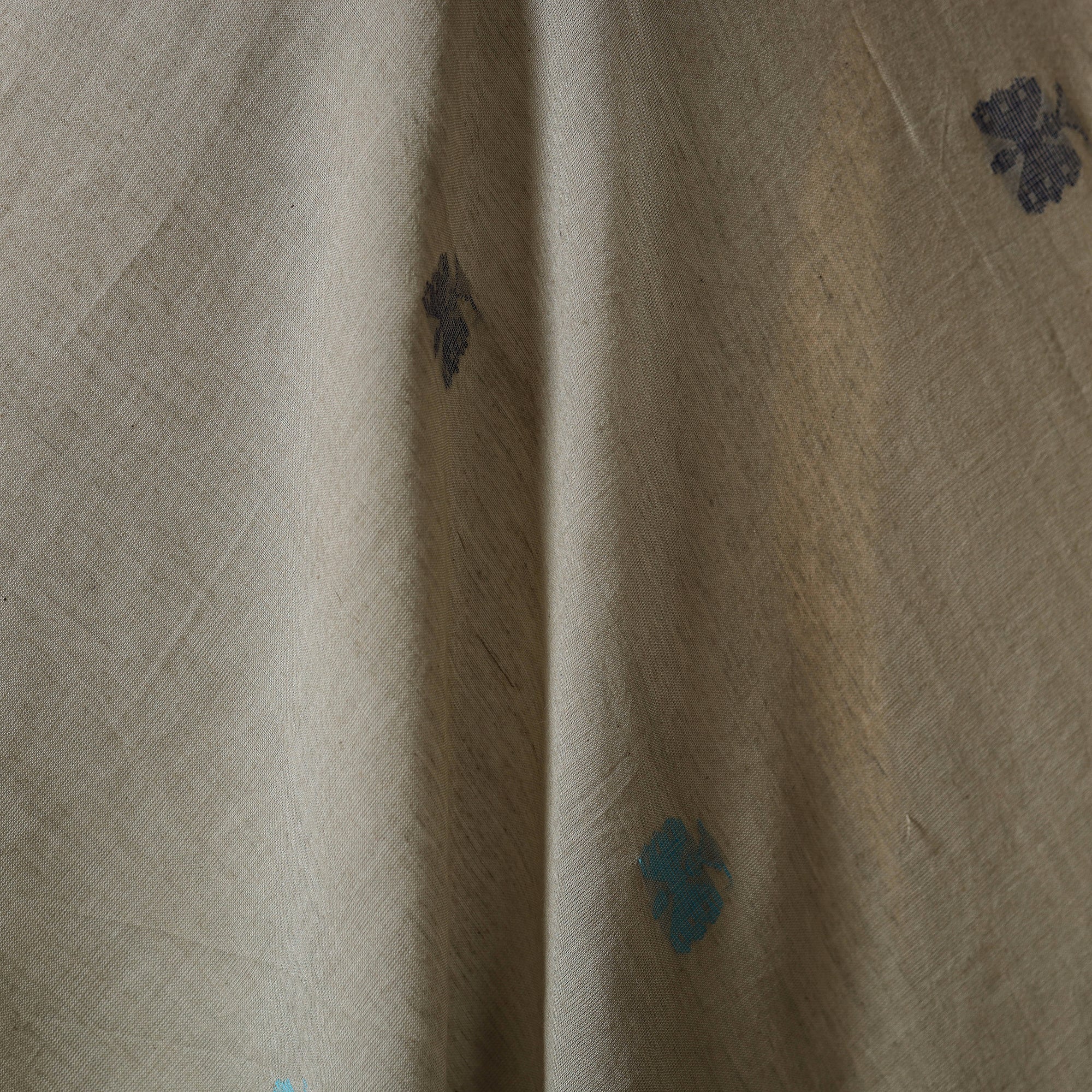 This beige phulia jamdani cotton fabric reflects Bengal’s rich textile heritage. Woven with the intricate weft technique, each piece requires time and patience to weave. Celebrated for its delicate motifs and elegance, the fabric is ideal for sarees, dupattas, kurtas, or even refined home décor accents.