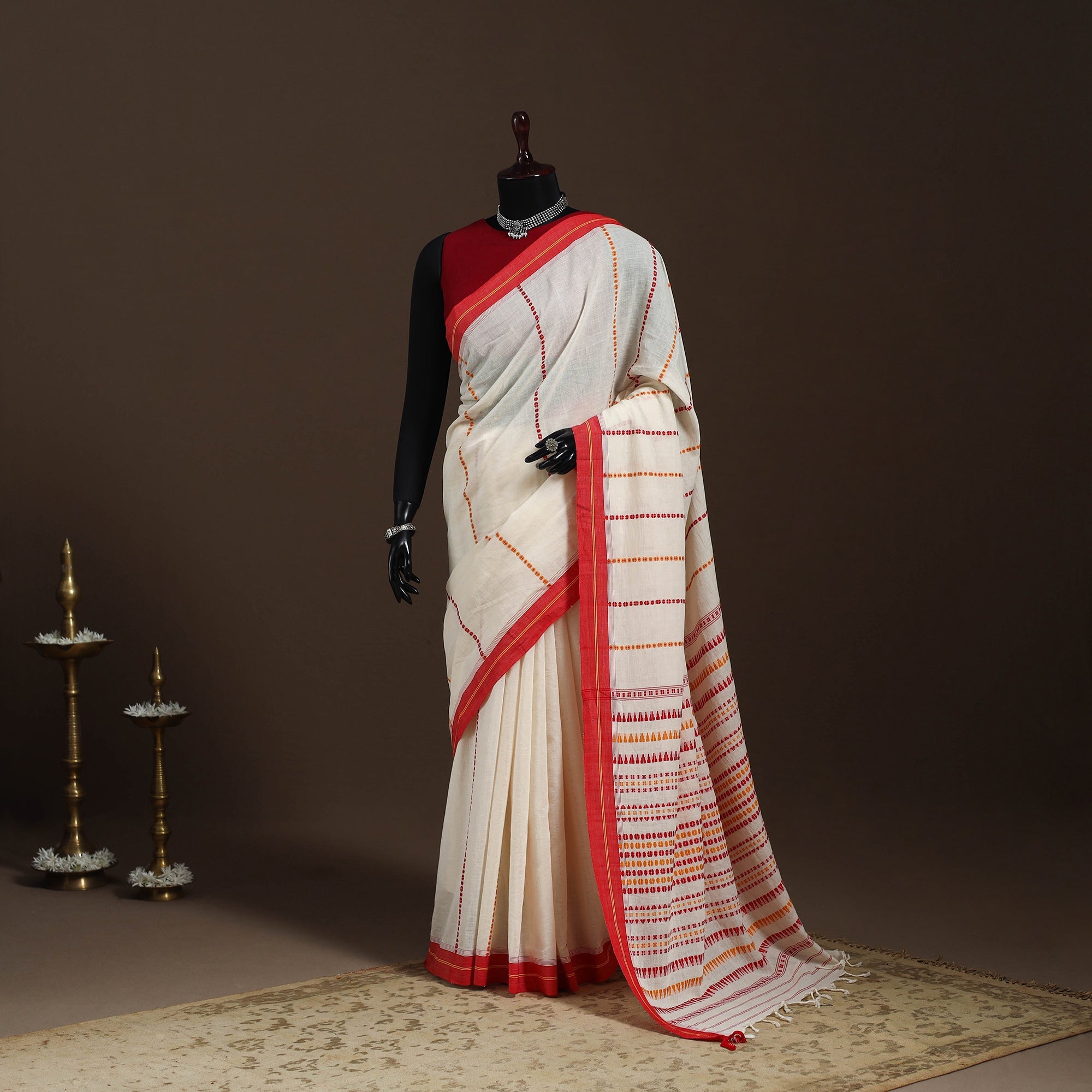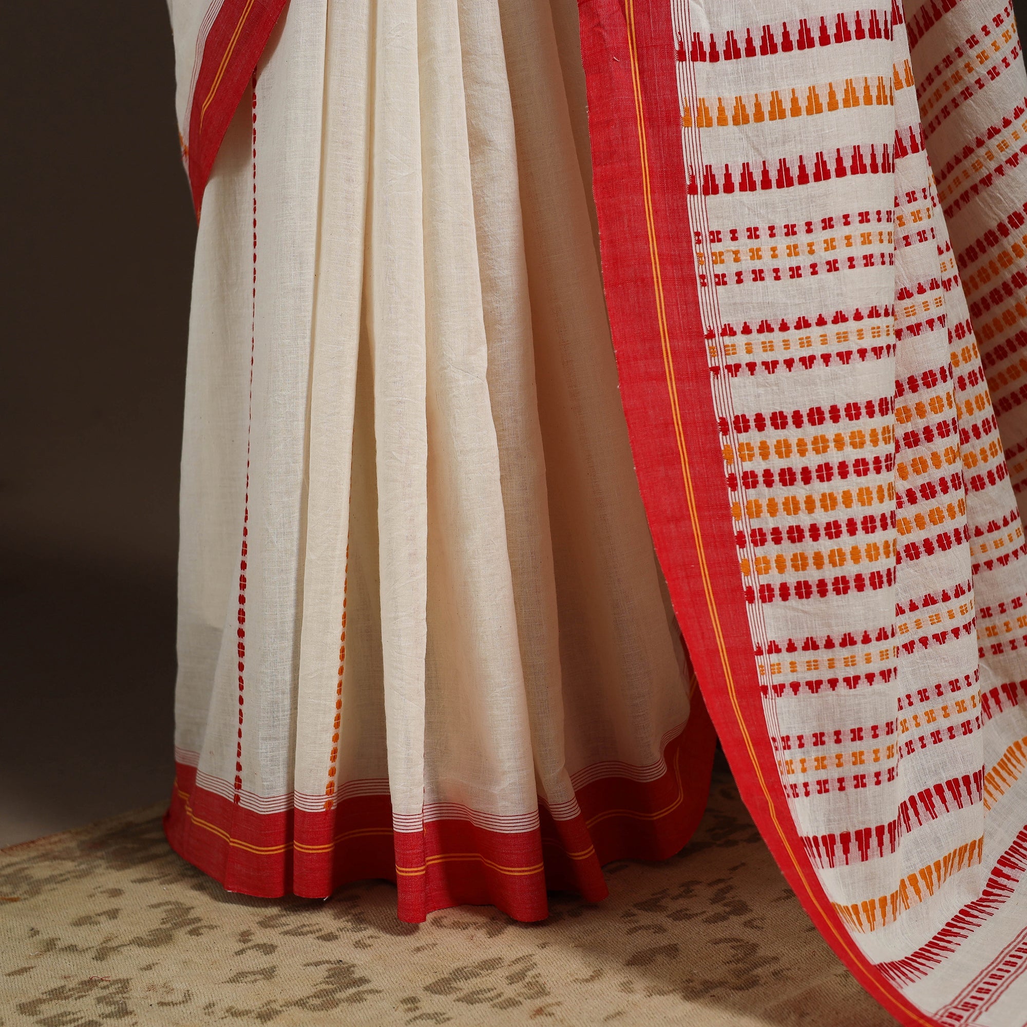 White - Handloom Bengal Jamdani Cotton 2pc Unstitched Dress Material 13