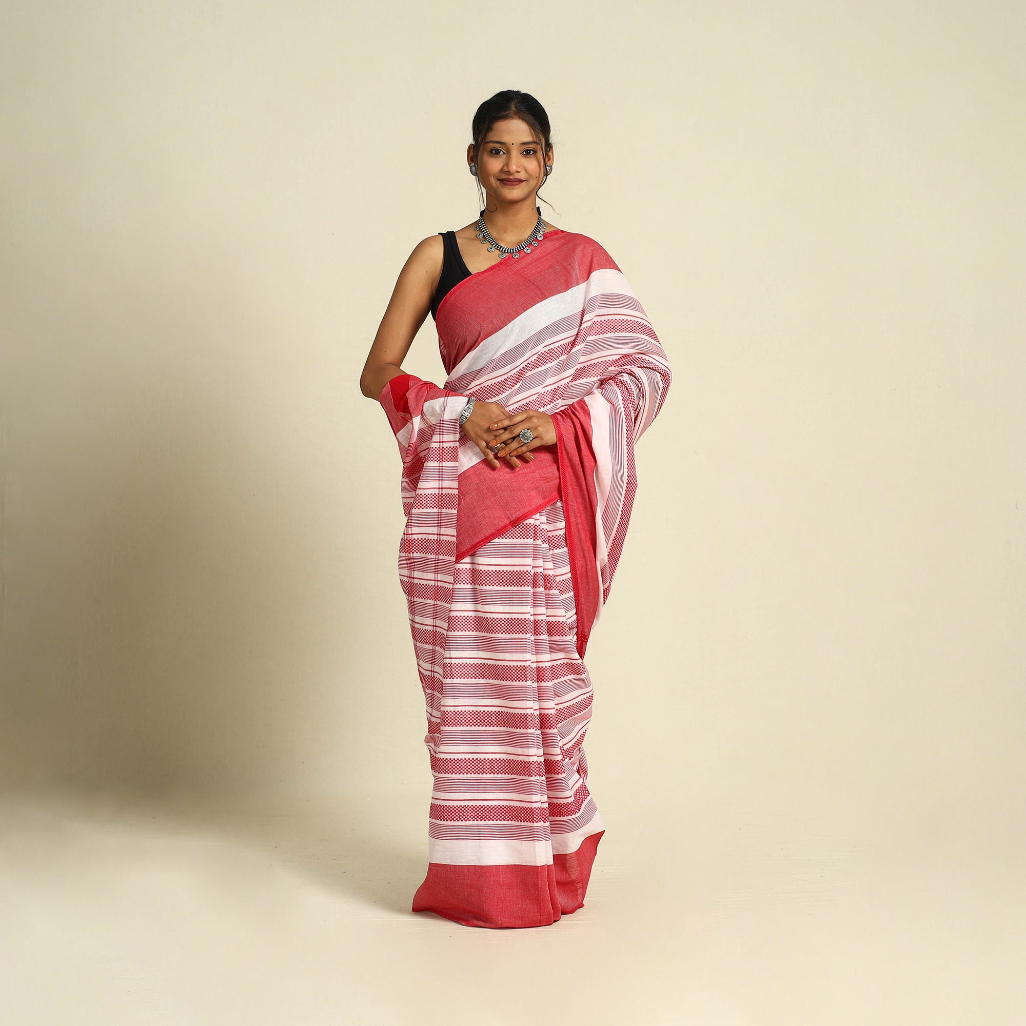 This handloom cotton phulia jamdani saree showcases a weaving technique unique to Bengal, where motifs are created directly on the loom, much like embroidery. Crafted by skilled artisans, it reflects the cultural richness of Bengal. A perfect choice for those who appreciate traditional, sustainable fashion.