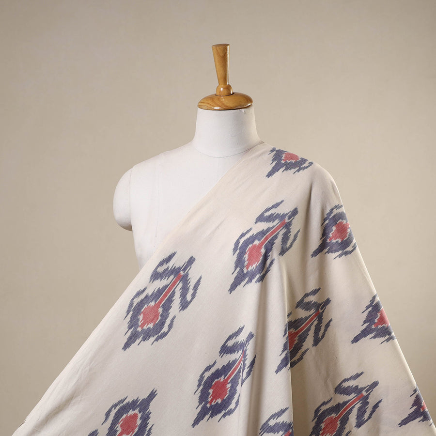 This beige cotton pochampally central asian ikat fabric is woven in Telangana using the traditional ikat dyeing method, where both warp and weft threads are dyed before weaving. The result is clean, geometric patterns with a rich colors. Lightweight and versatile, this fabric is suitable for kurtas, dresses, dupattas, or even home decor projects. A blend of pochampally’s heritage and central asian-inspired motifs, it brings a timeless appeal to any design.