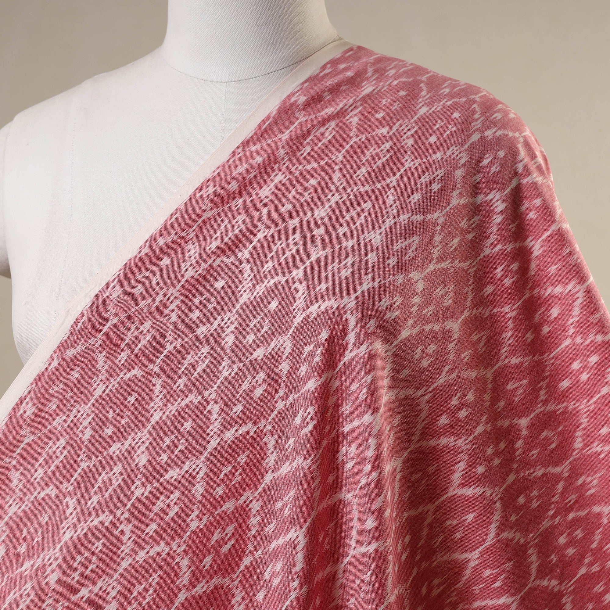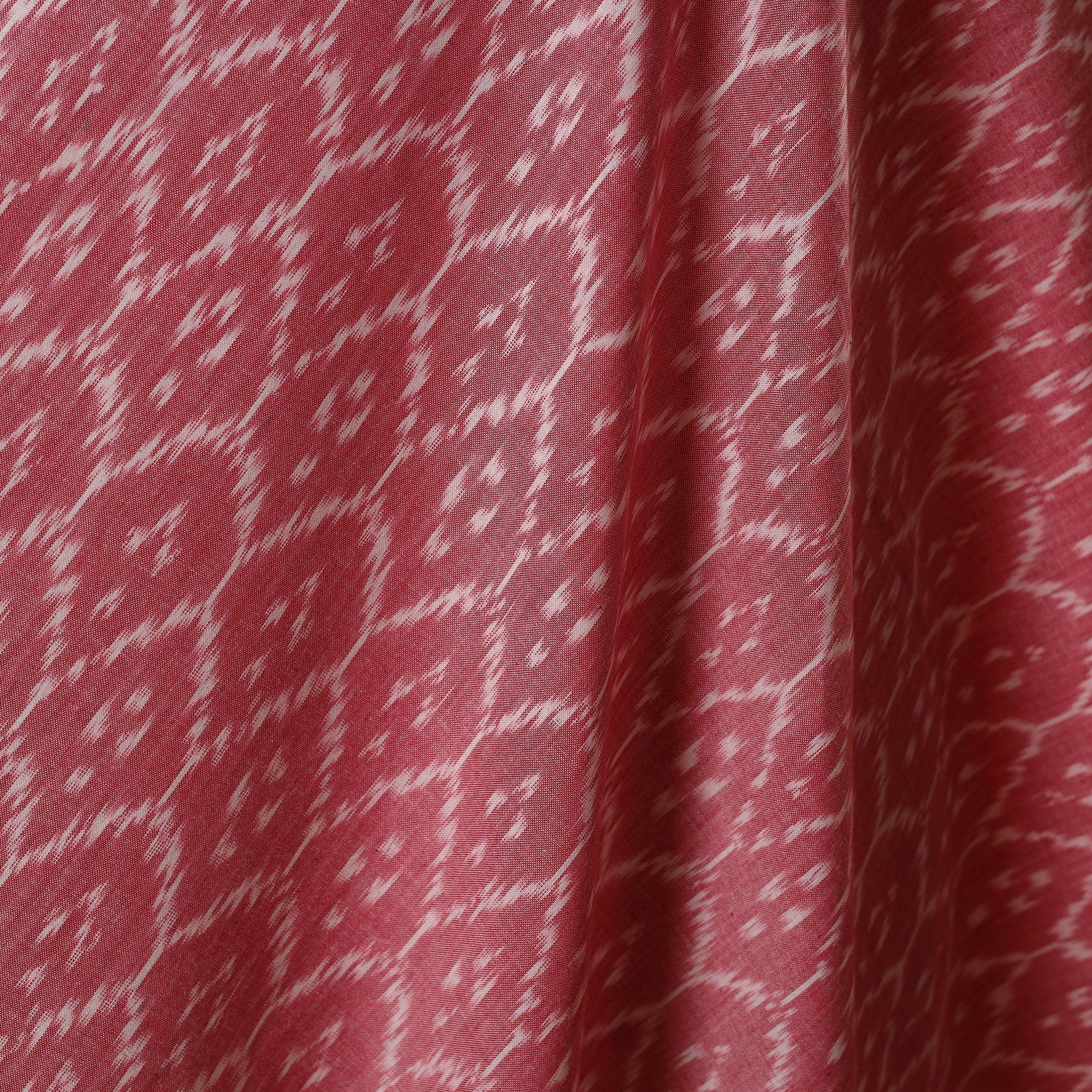 This fine quality pink handloom cotton pochampally double ikat fabric from Telangana showcases the elegance of India’s iconic weaving tradition. Crafted using the intricate ikat resist-dye technique, where warp and weft are pre-dyed before weaving, it results in stunning, symmetrical patterns. Renowned for its vibrant colors and unique textures, this fabric is ideal for both traditional attire and contemporary creations, adding a timeless charm to kurtas, dresses, furnishings, or DIY design projects alike.