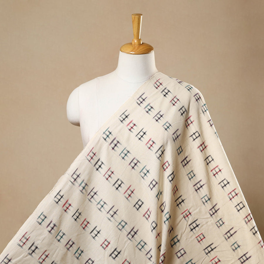 White - Cotton Central Asian Pochampally Ikat Fabric 23