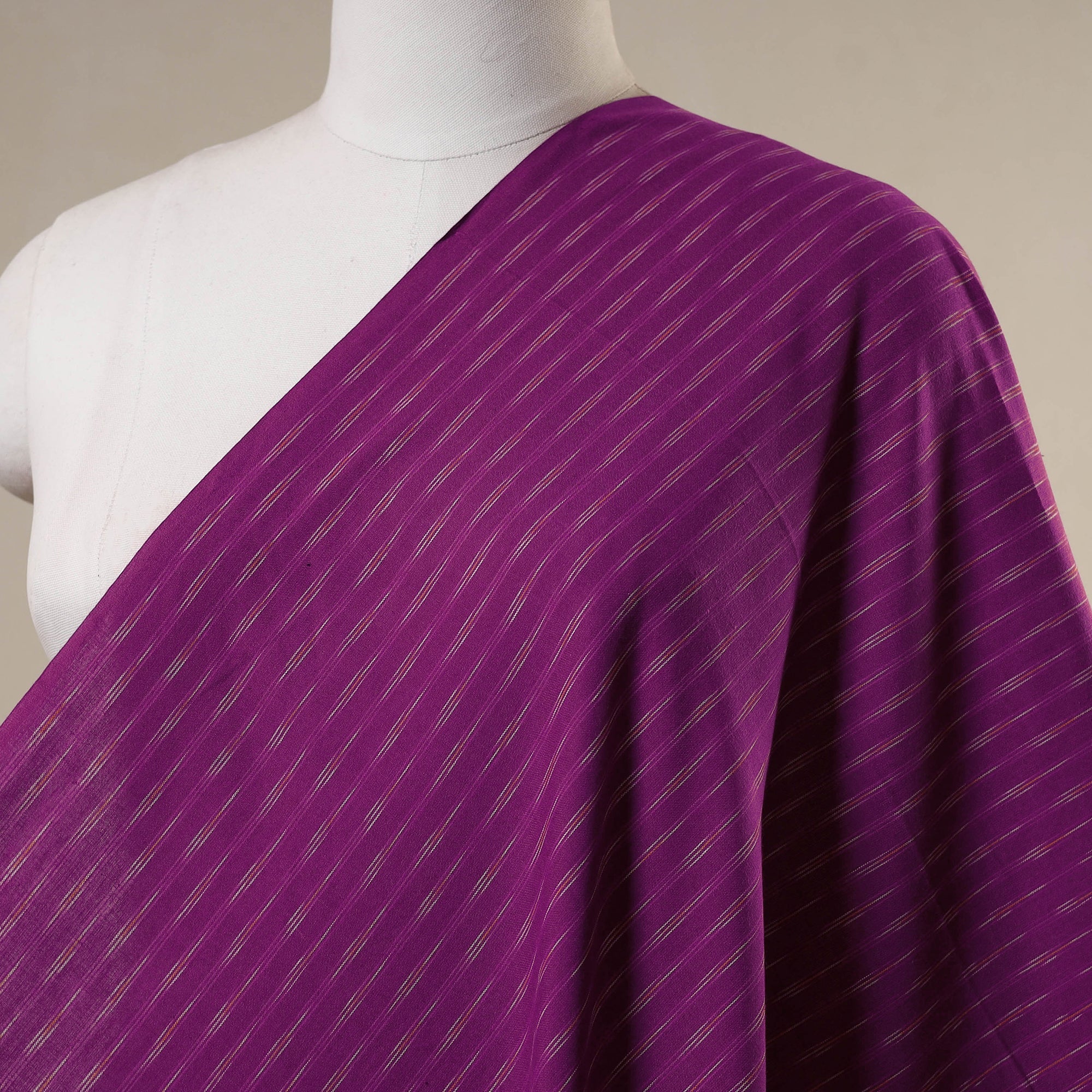 This fine quality purple handloom cotton pochampally double ikat fabric from Telangana showcases the elegance of India’s iconic weaving tradition. Crafted using the intricate ikat resist-dye technique, where warp and weft are pre-dyed before weaving, it results in stunning, symmetrical patterns. Renowned for its vibrant colors and unique textures, this fabric is ideal for both traditional attire and contemporary creations, adding a timeless charm to kurtas, dresses, furnishings, or DIY design projects alike.
