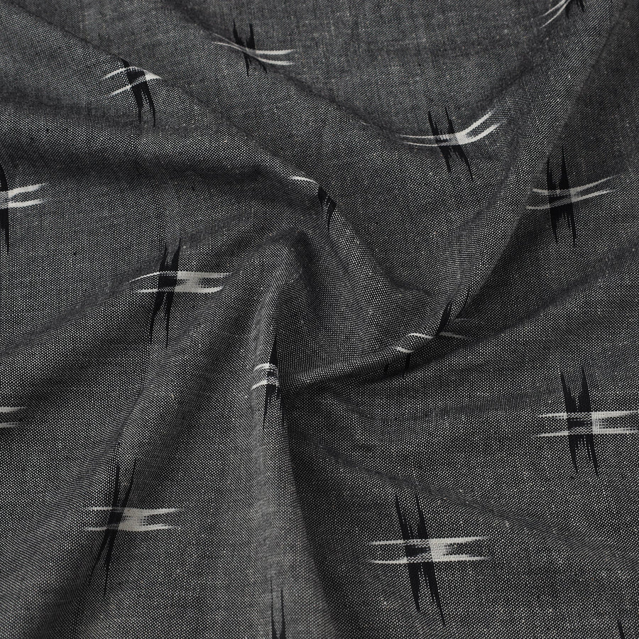 Fine quality grey handloom cotton pochampally double ikat fabric from Telangana. Ikat (Ikkat) is a dyeing technique used to pattern textiles through a resist dyeing process similar to tie-dye on either the warp or weft fibers prior to dyeing. Ikat has lovely patterns and are world famous for their extremely beautiful colors, texture and designs. Perfect for both traditional and modern projects. This piece carries tiny knots, thread pulls, or uneven lines — not flaws, but fingerprints. Every irregularity is a whisper from the hands that made it. It’s what happens when tradition weaves through time, not machines. If you’re looking for perfection, this isn’t it. But if you’re looking for soul — you’ve found it.