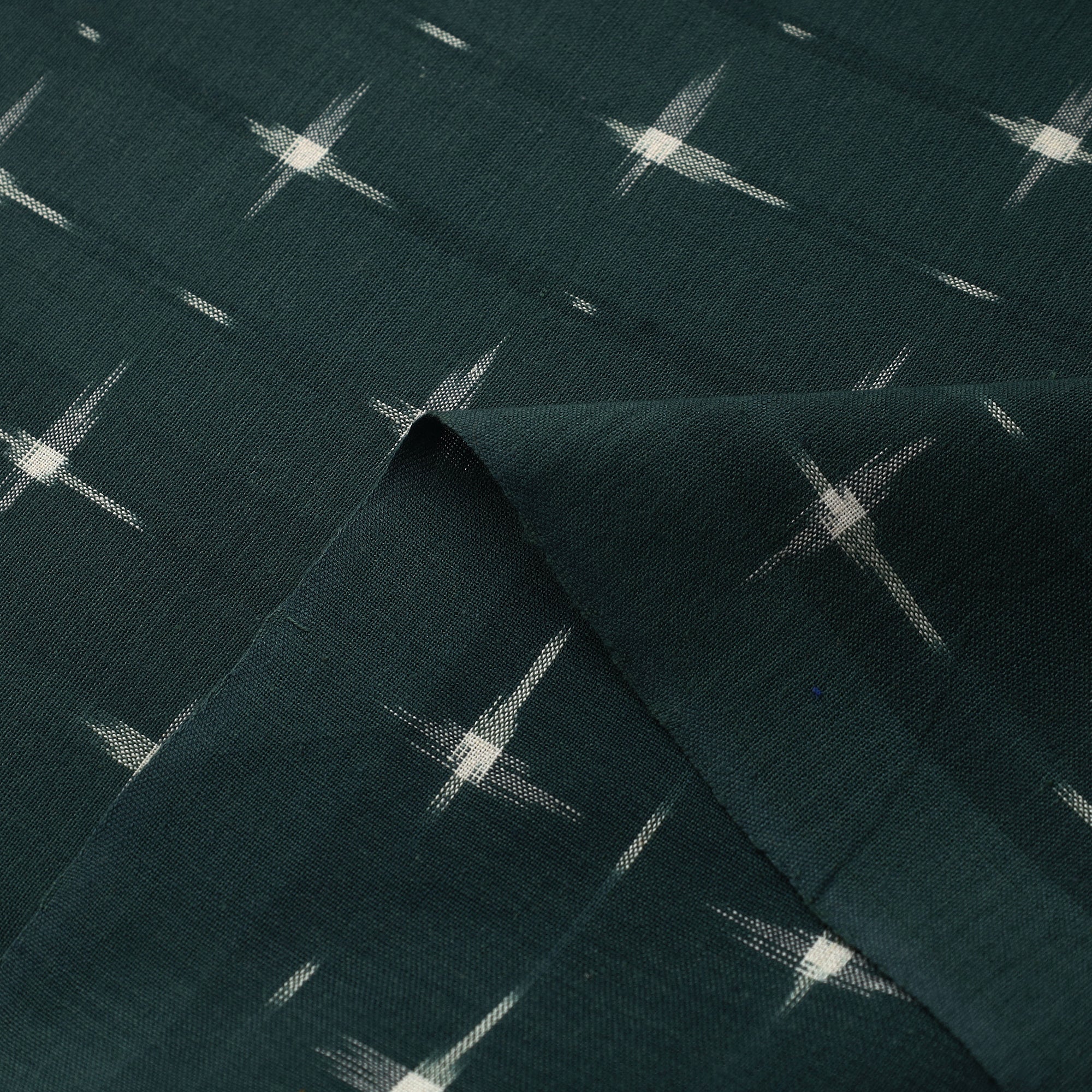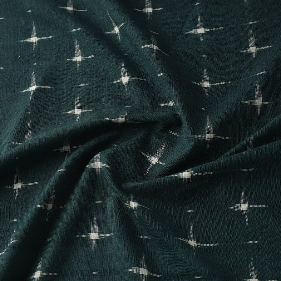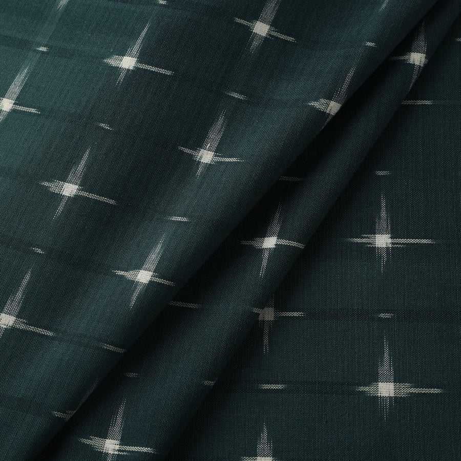 Add a touch of heritage to your creations with this green handloom cotton pochampally double ikat fabric from Telangana. Known for its intricate weaving technique, this fabric boasts vibrant colors and unique patterns achieved through a resist dyeing process. perfect for ethnic wear, décor or custom designs. This piece carries tiny knots, thread pulls, or uneven lines — not flaws, but fingerprints. Every irregularity is a whisper from the hands that made it. It’s what happens when tradition weaves through time, not machines. If you’re looking for perfection, this isn’t it. But if you’re looking for soul — you’ve found it.