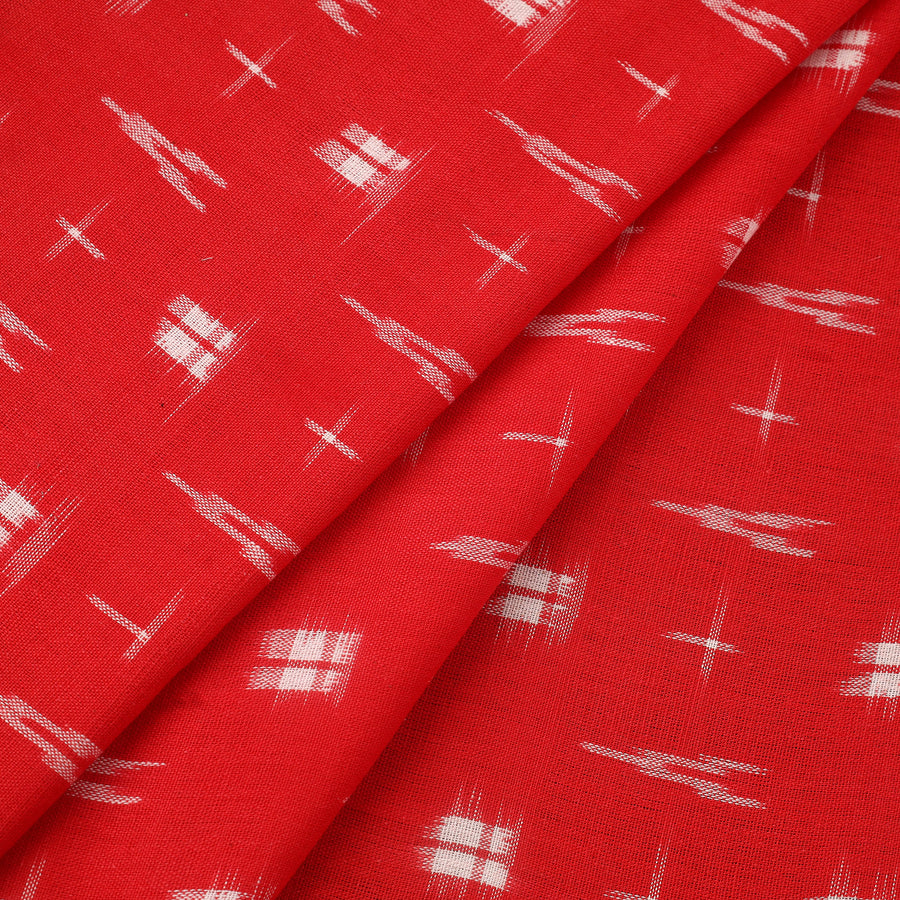 Fine quality red handloom cotton pochampally double ikat fabric from Telangana. Ikat (Ikkat) is a dyeing technique used to pattern textiles through a resist dyeing process similar to tie-dye on either the warp or weft fibers prior to dyeing. Ikat has lovely patterns and are world famous for their extremely beautiful colors, texture and designs. Perfect for both traditional and modern projects. This piece carries tiny knots, thread pulls, or uneven lines — not flaws, but fingerprints. Every irregularity is a whisper from the hands that made it. It’s what happens when tradition weaves through time, not machines. If you’re looking for perfection, this isn’t it. But if you’re looking for soul — you’ve found it.