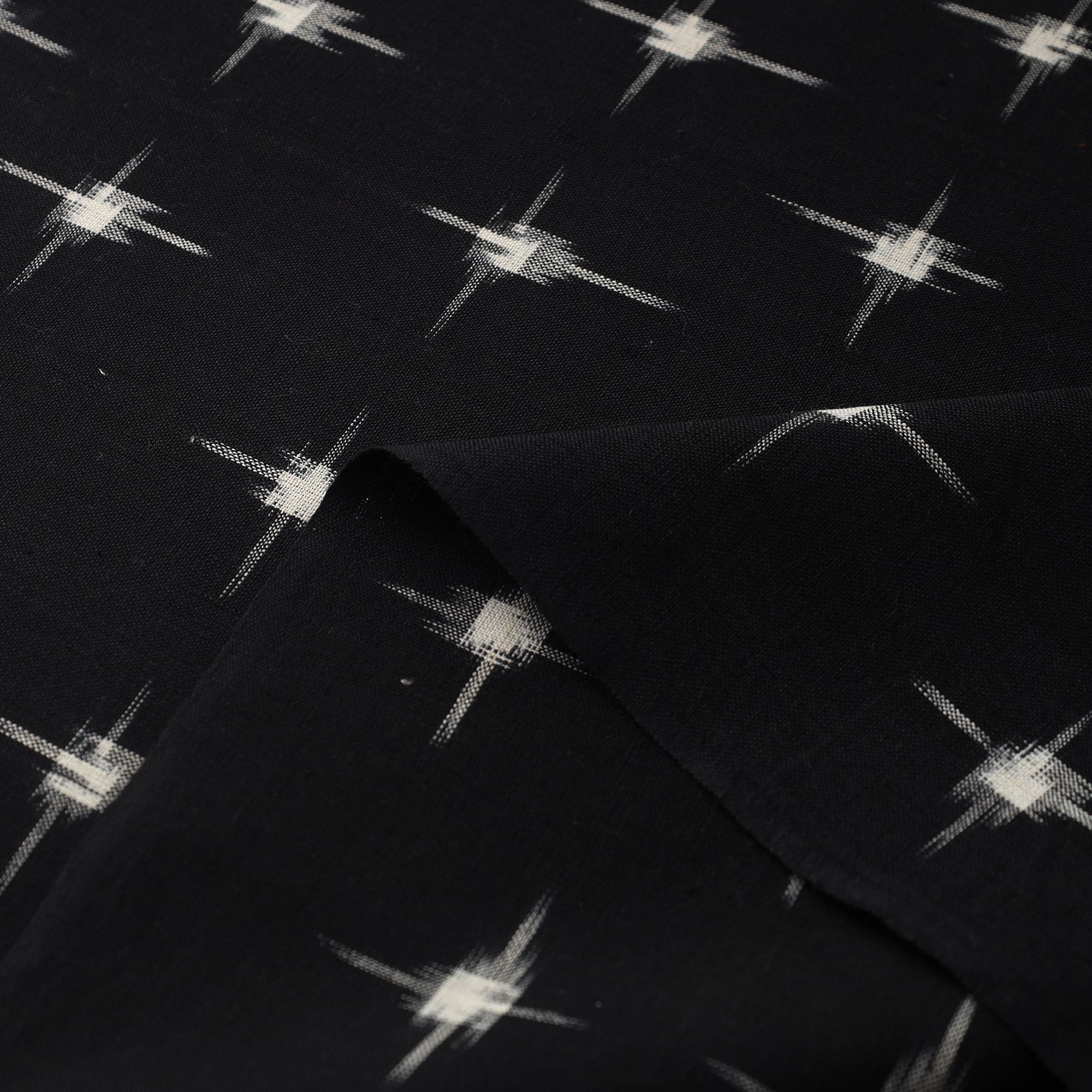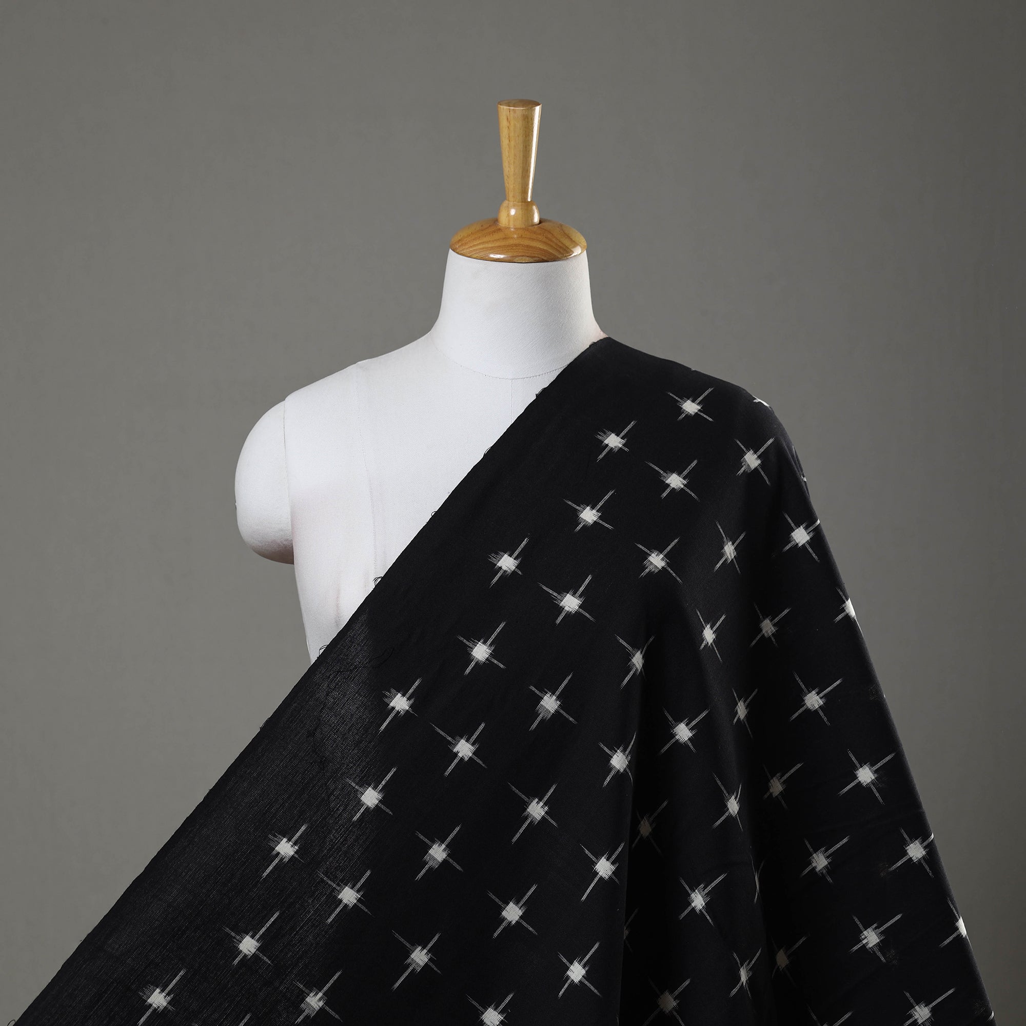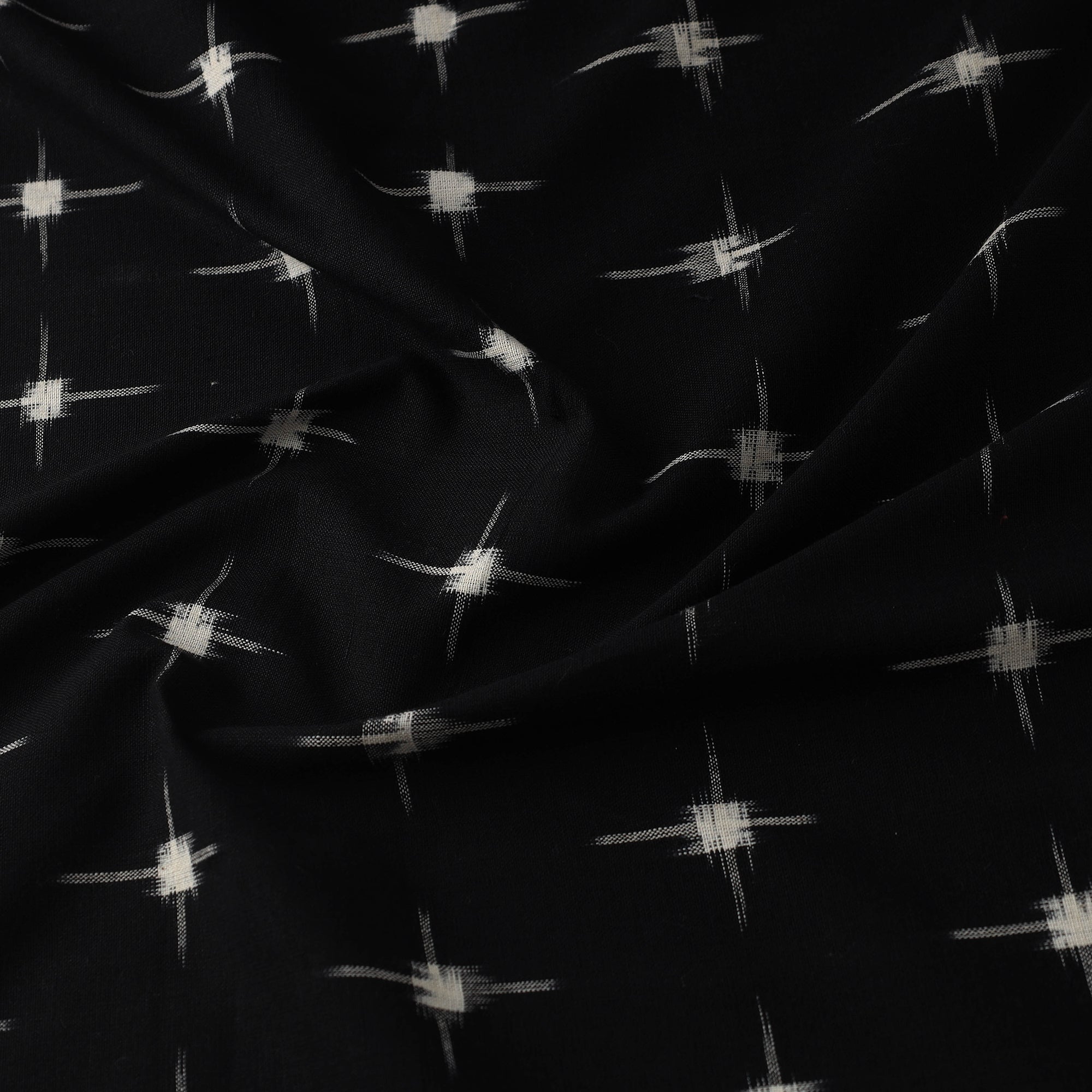 Add a touch of heritage to your creations with this black handloom cotton pochampally double ikat fabric from Telangana. Known for its intricate weaving technique, this fabric boasts vibrant colors and unique patterns achieved through a resist dyeing process. perfect for ethnic wear, décor or custom designs. This piece carries tiny knots, thread pulls, or uneven lines — not flaws, but fingerprints. Every irregularity is a whisper from the hands that made it. It’s what happens when tradition weaves through time, not machines. If you’re looking for perfection, this isn’t it. But if you’re looking for soul — you’ve found it.