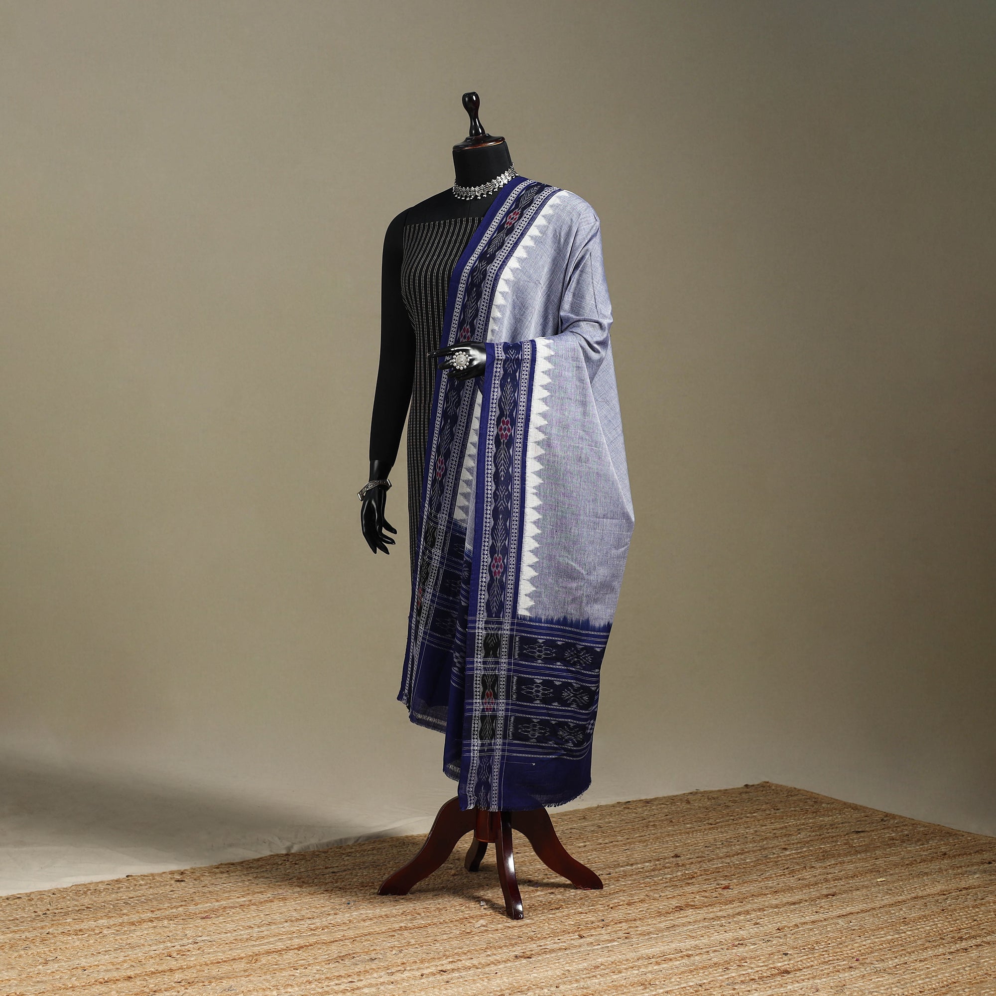 Experience the elegance of blue handloom cotton sambalpuri ikat dupatta from Odisha. Crafted by artisans this dupatta showcases the artistry of Eastern India. Ikat dyeing technique known for its patterns and vibrant colors. Perfect for any occasion this dupatta blends tradition with contemporary fashion. Embrace the beauty of Indian Ikat cherished by fashion designers worldwide.