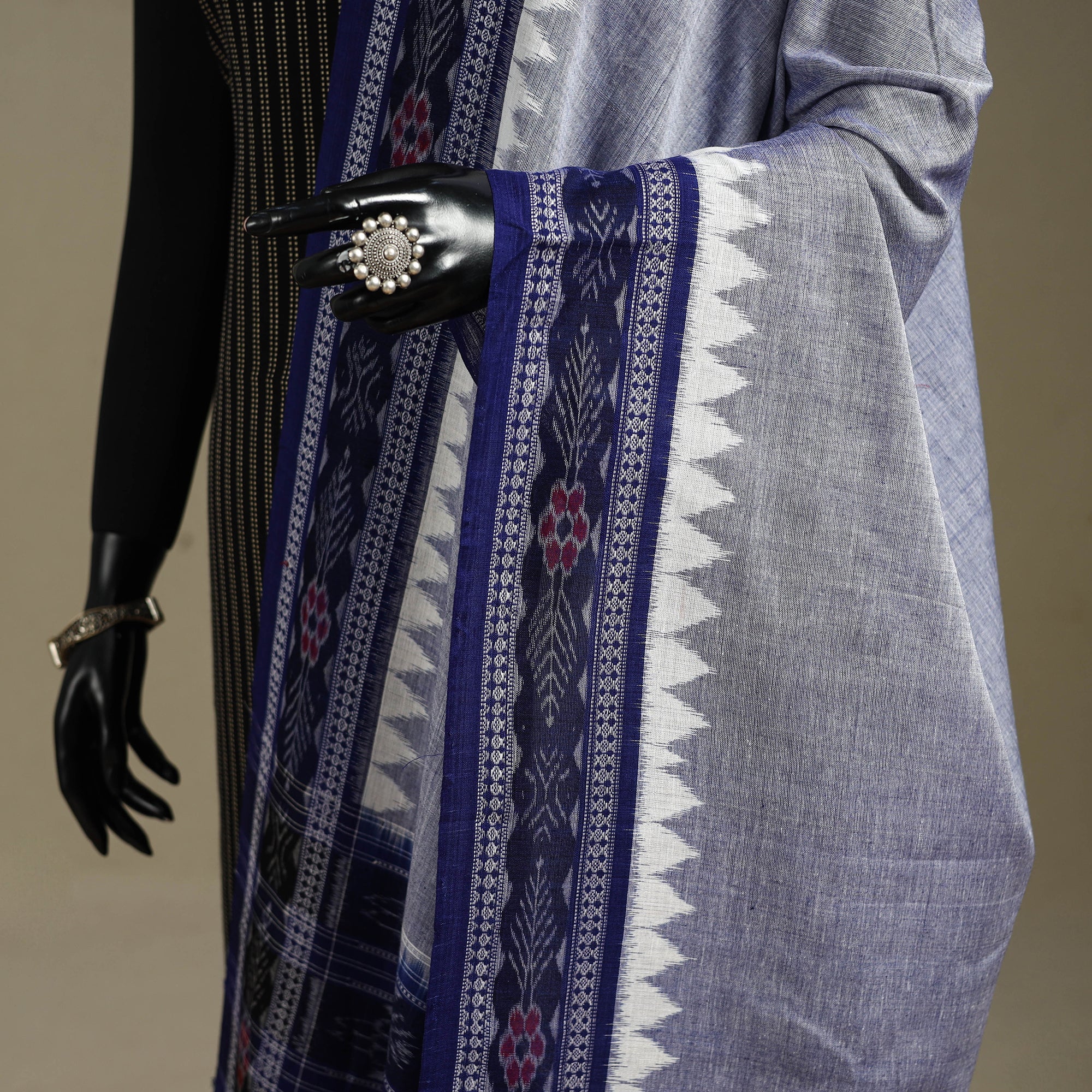 Sambalpuri Ikat is a combination of defined motifs, which are produced through precision and patience by the skilled professional artisans. Almost all of the designs are cotton-based which makes the color seep in deeper making any attire crafted with it which is suitable for all weathers.
