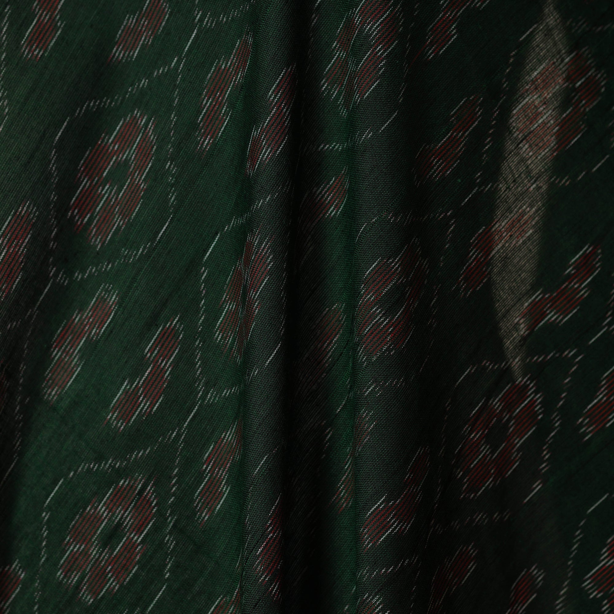 This green handloom cotton sambalpuri Ikat fabric is meticulously woven by skilled artisans from Odisha, using the age-old resist dyeing method applied to both warp and weft threads. Known for its intricate motifs and deep cultural symbolism, the fabric reflects the timeless heritage of Eastern India’s weaving traditions. Perfect for creating kurtas, dresses, or distinctive home décor accents.