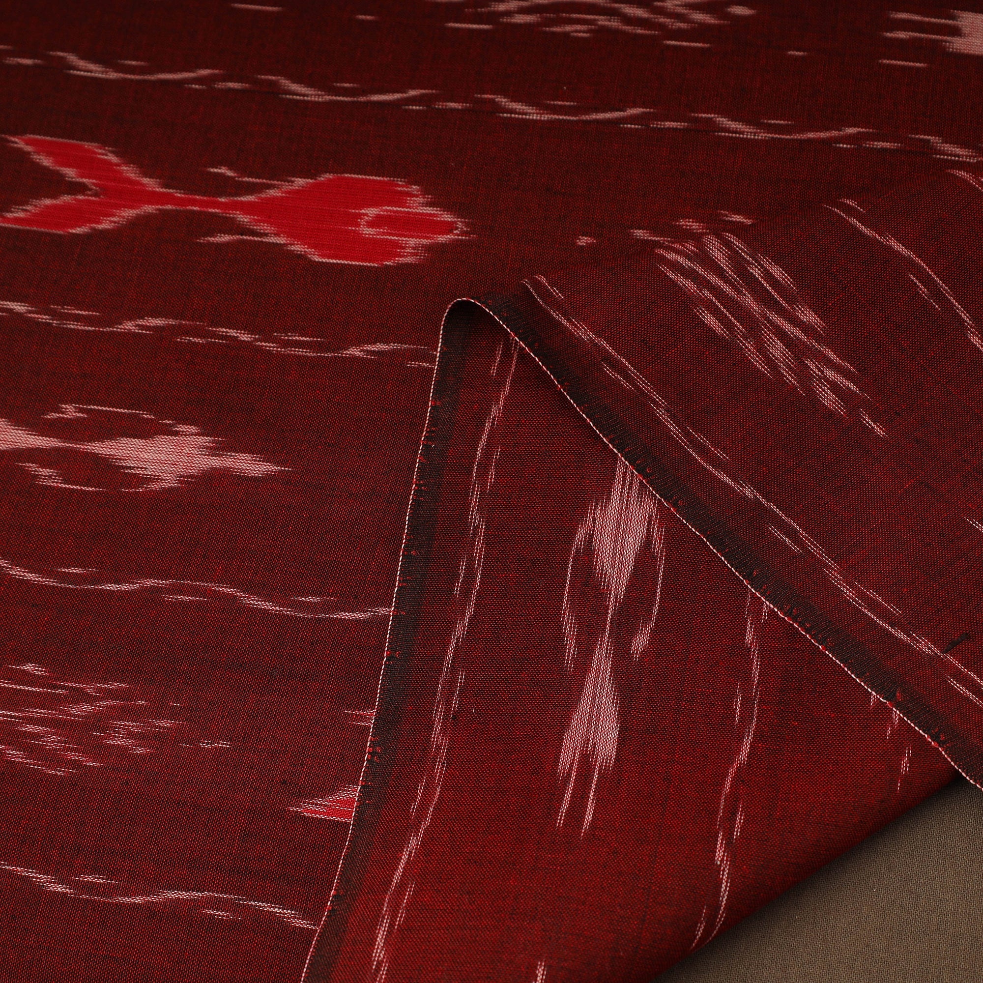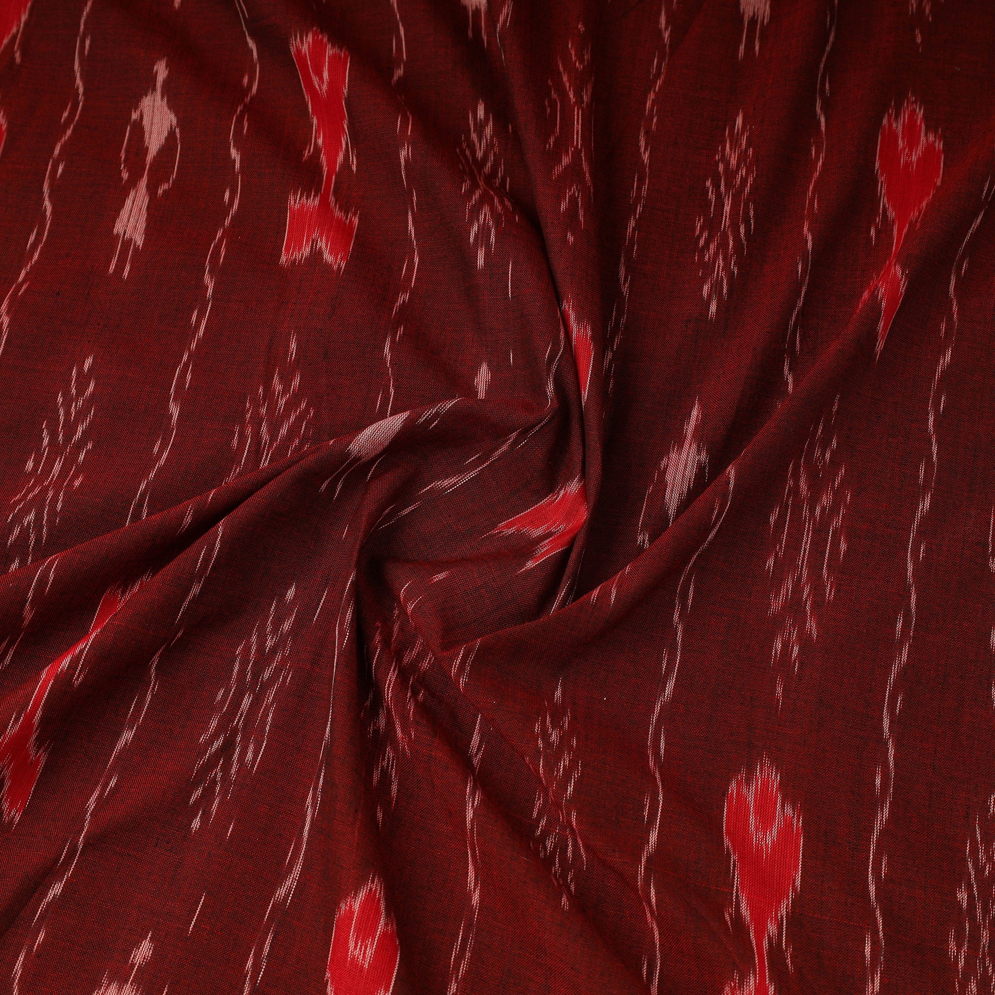This maroon handloom cotton sambalpuri Ikat fabric is intricately woven by skilled artisans from Odisha, using the traditional resist-dyeing technique applied to both warp and weft threads. Celebrated for its detailed motifs and cultural significance, the fabric showcases the enduring legacy of Eastern India’s textile traditions. Ideal for crafting kurtas, dresses, or distinctive home décor accents.