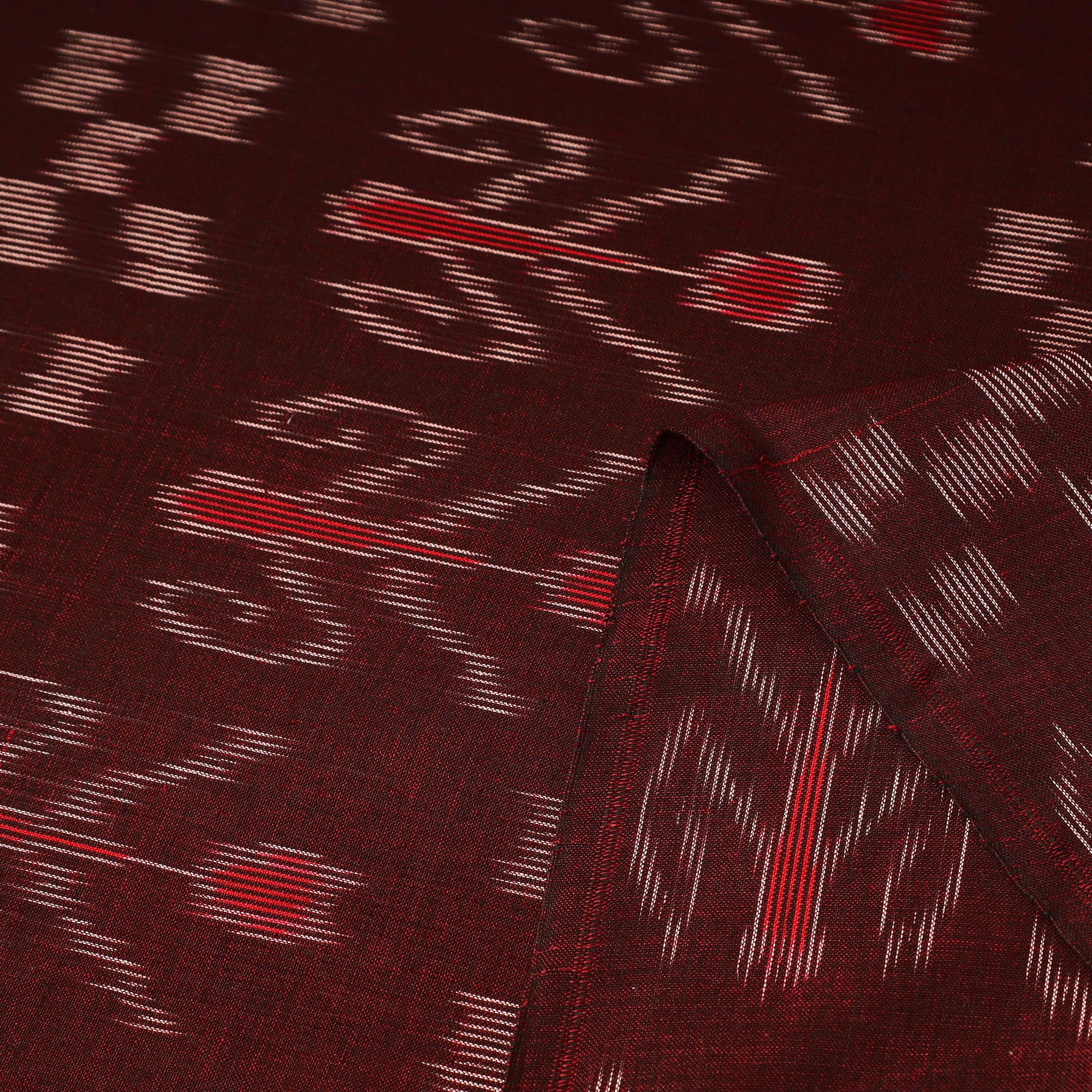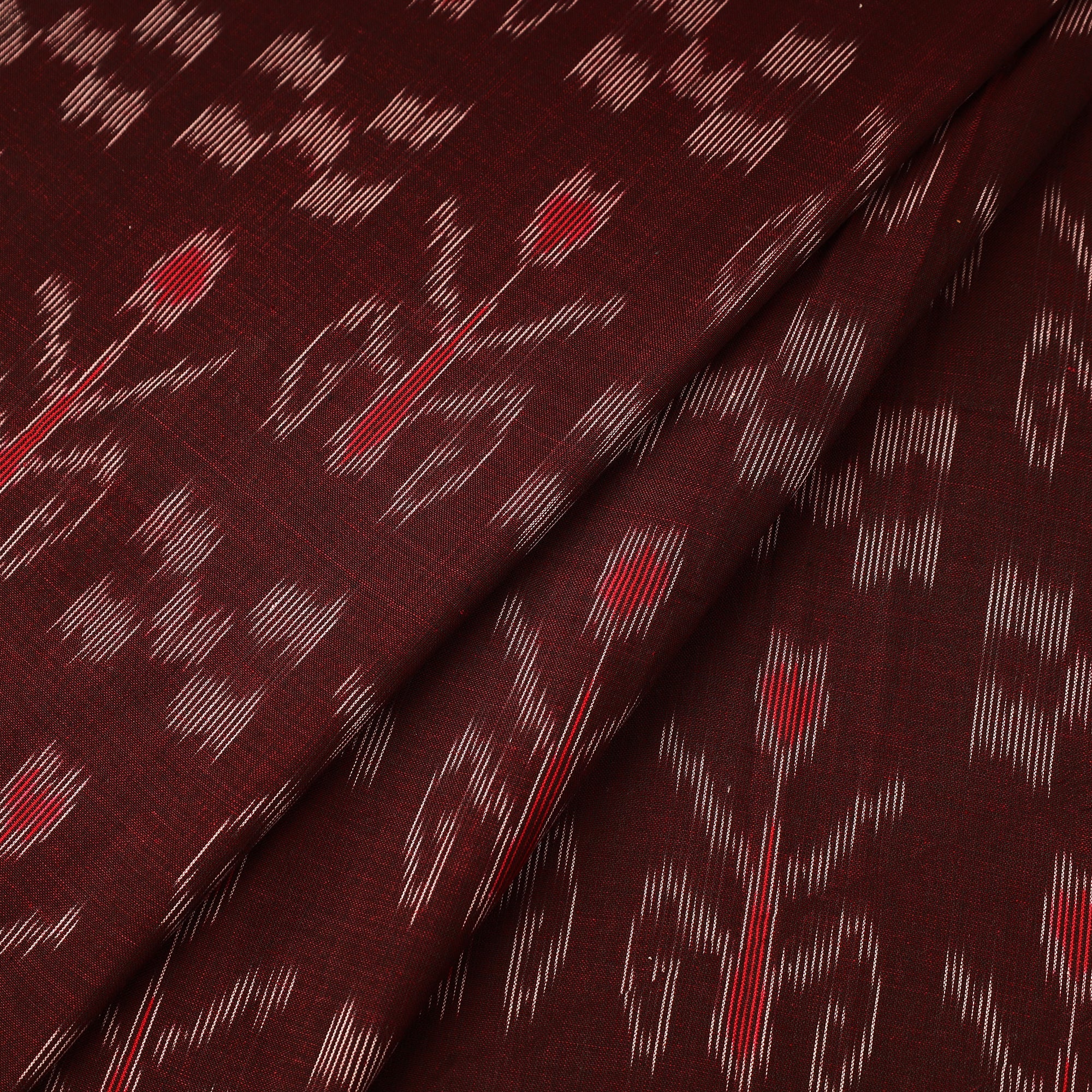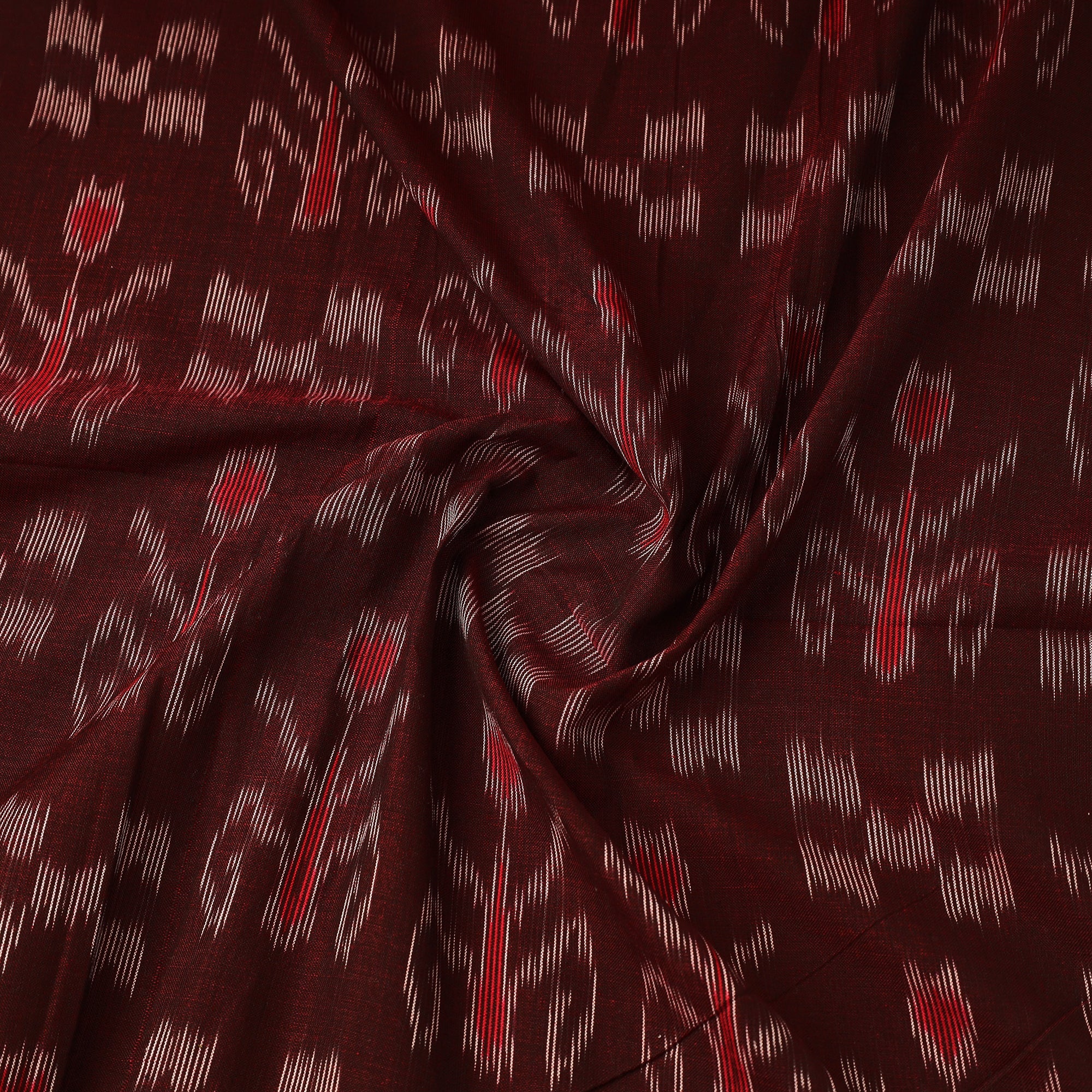 This maroon handloom cotton sambalpuri Ikat fabric is intricately woven by skilled artisans from Odisha, using the traditional resist-dyeing technique applied to both warp and weft threads. Celebrated for its detailed motifs and cultural significance, the fabric showcases the enduring legacy of Eastern India’s textile traditions. Ideal for crafting kurtas, dresses, or distinctive home décor accents.