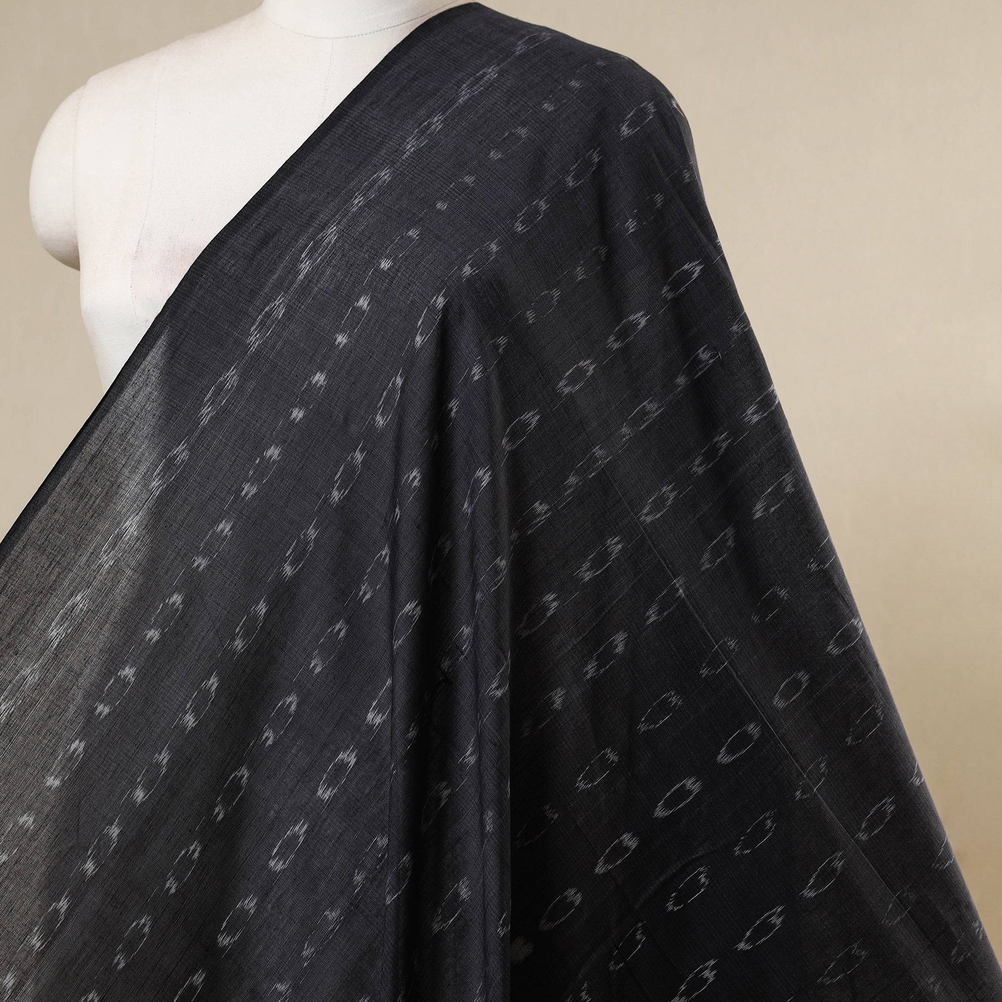 This black handloom cotton sambalpuri Ikat fabric is meticulously woven by skilled artisans from Odisha, using the age-old resist dyeing method applied to both warp and weft threads. Known for its intricate motifs and deep cultural symbolism, the fabric reflects the timeless heritage of Eastern India’s weaving traditions. Perfect for creating kurtas, dresses, or distinctive home décor accents.