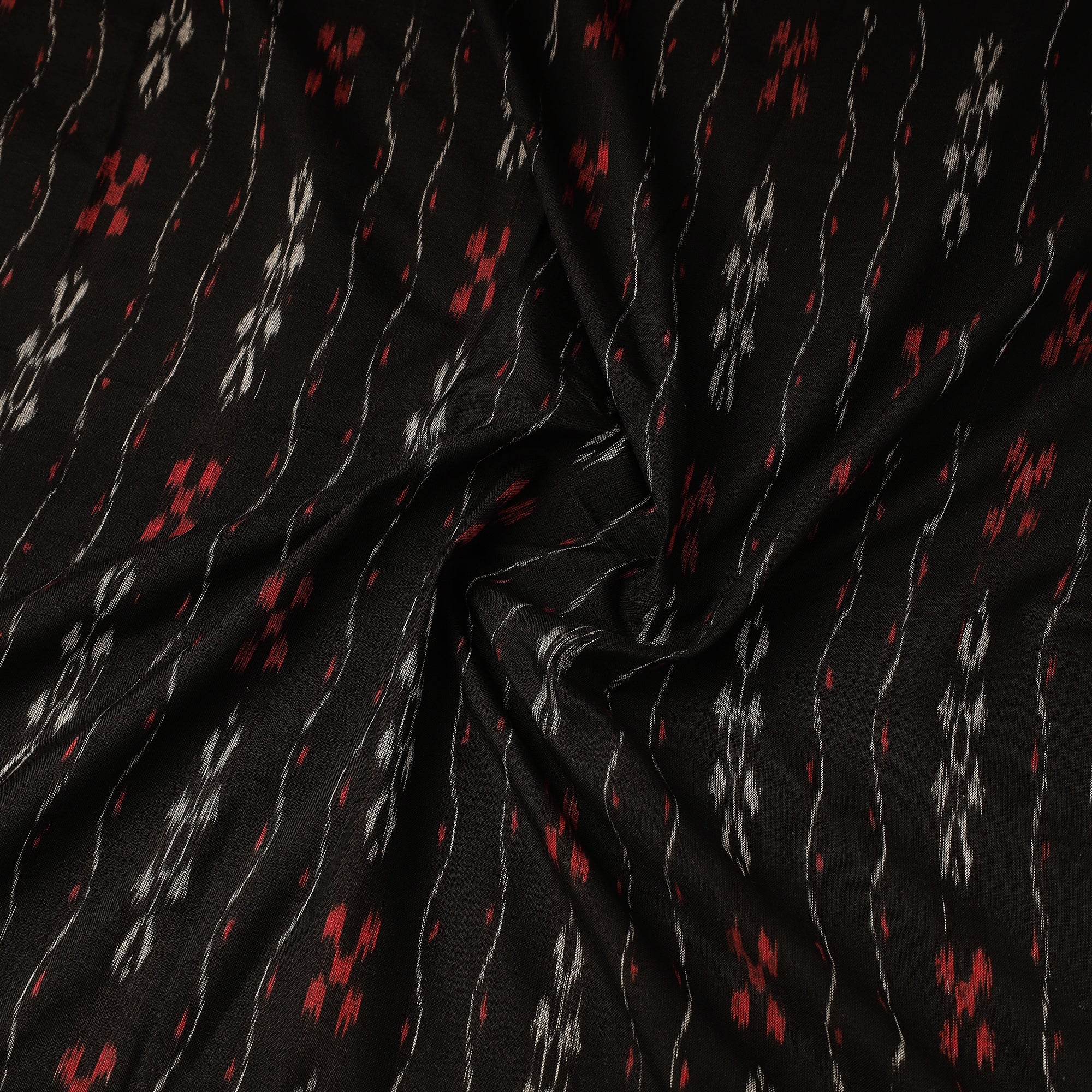 This black handloom cotton sambalpuri Ikat fabric is intricately woven by skilled artisans from Odisha, using the traditional resist-dyeing technique applied to both warp and weft threads. Celebrated for its detailed motifs and cultural significance, the fabric showcases the enduring legacy of Eastern India’s textile traditions. Ideal for crafting kurtas, dresses, or distinctive home décor accents.