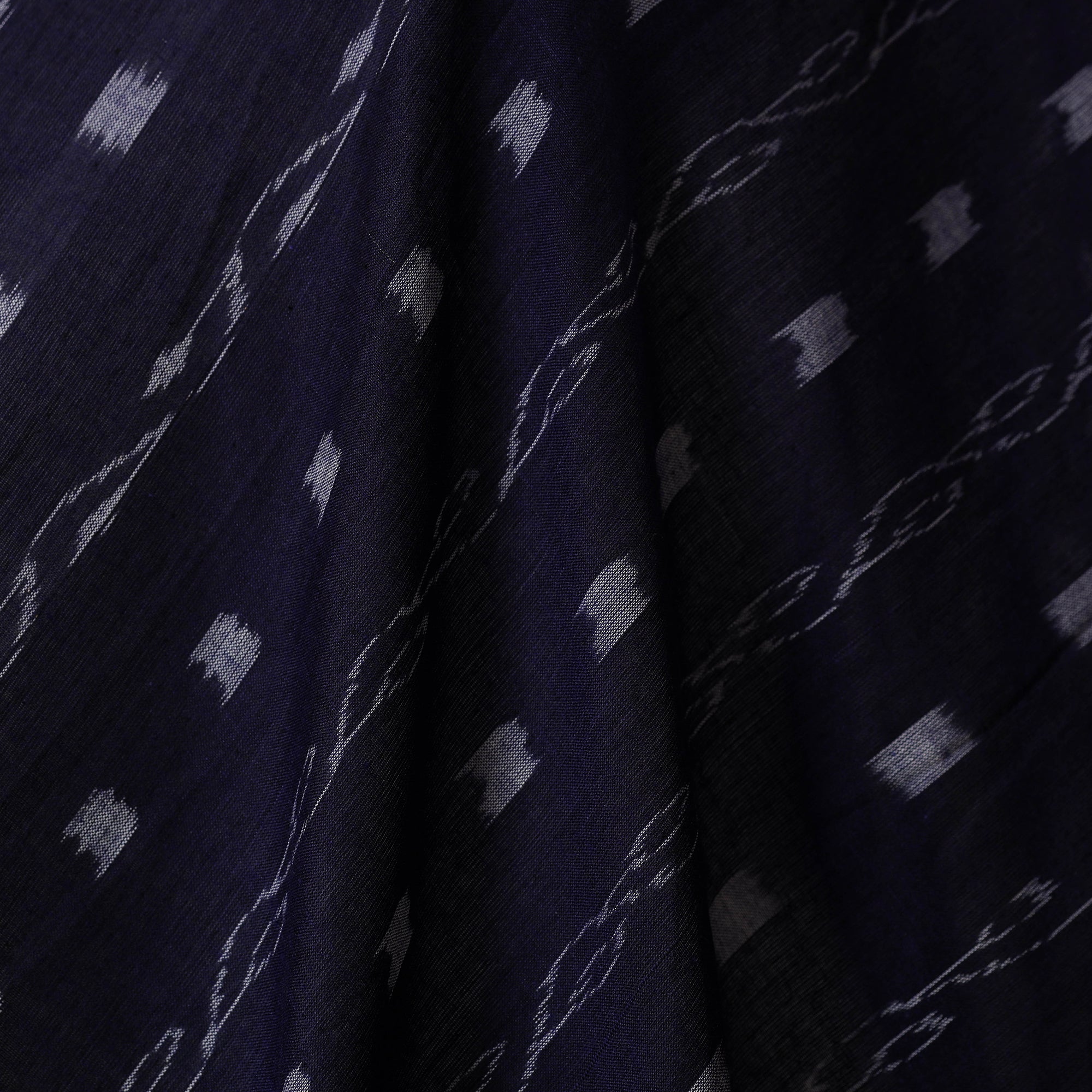 This handloom cotton sambalpuri Ikat fabric is meticulously woven by skilled artisans from Odisha, using the age-old resist dyeing method applied to both warp and weft threads. Known for its intricate motifs and deep cultural symbolism, the fabric reflects the timeless heritage of Eastern India’s weaving traditions. Perfect for creating kurtas, dresses, or distinctive home décor accents.