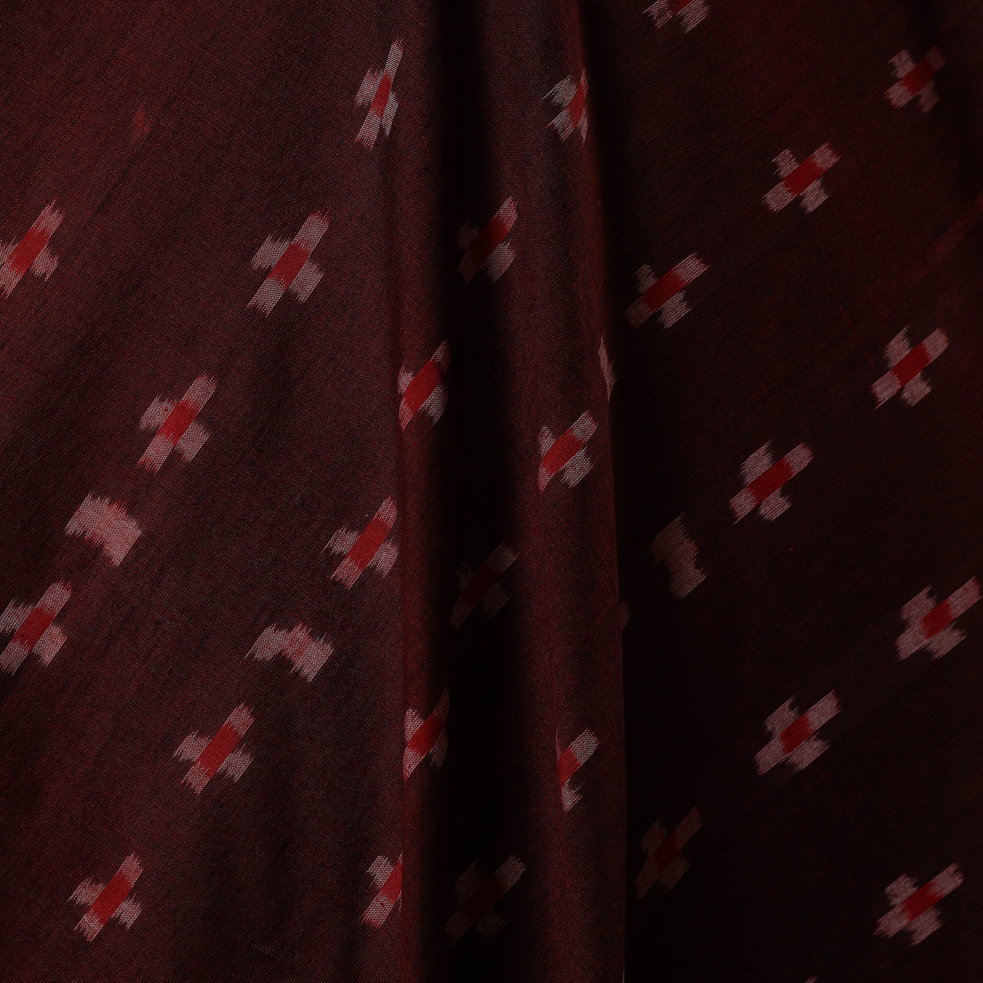 This maroon handloom cotton sambalpuri Ikat fabric is meticulously woven by skilled artisans from Odisha, using the age-old resist dyeing method applied to both warp and weft threads. Known for its intricate motifs and deep cultural symbolism, the fabric reflects the timeless heritage of Eastern India’s weaving traditions. Perfect for creating kurtas, dresses, or distinctive home décor accents.