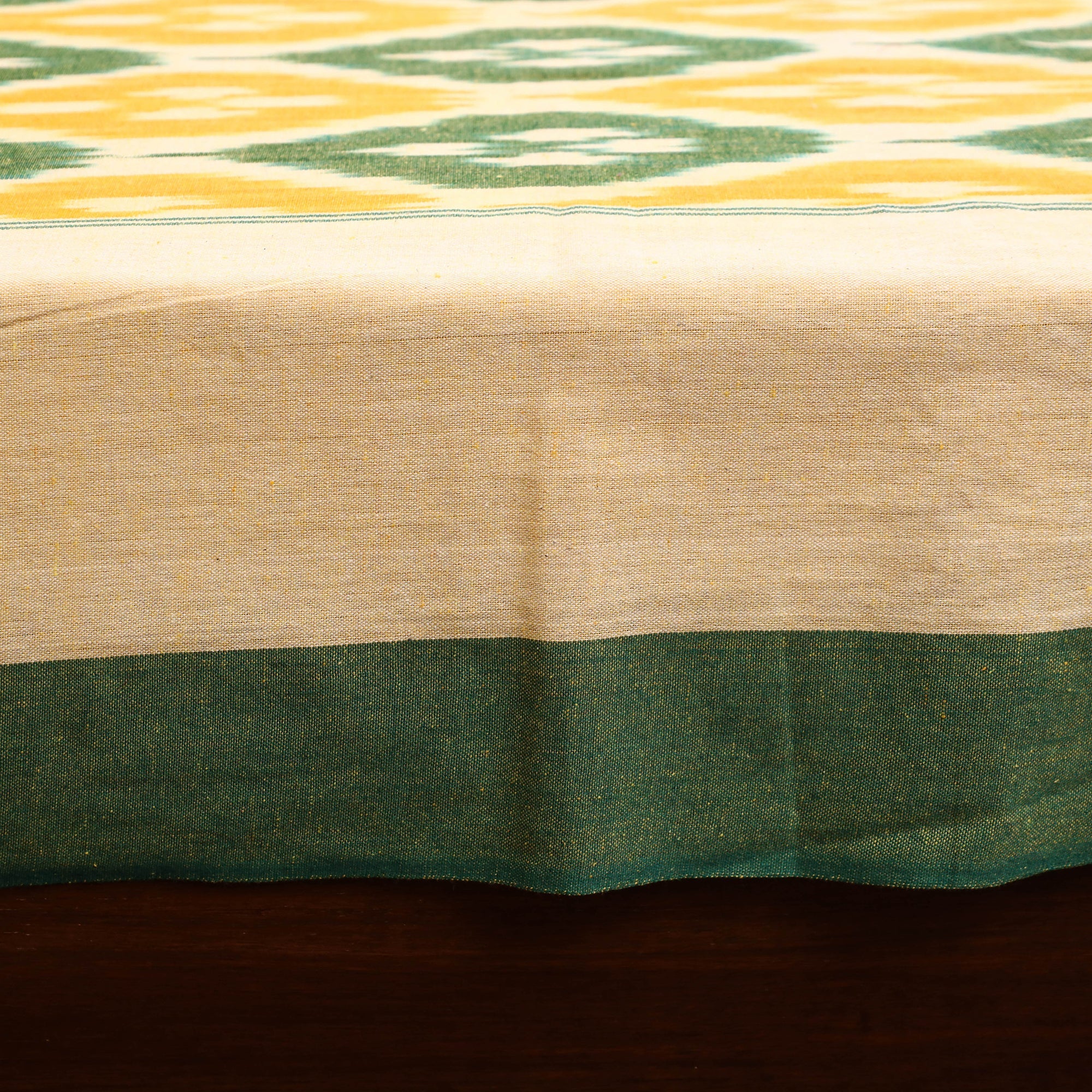 Handloom cotton pochampally ikat bed sheet, crafted by skilled artisans. The Ikat technique involves resist dyeing the yarns before weaving, creating intricate and unique patterns. This single bed sheet is perfect for adding a traditional touch to your bedroom.