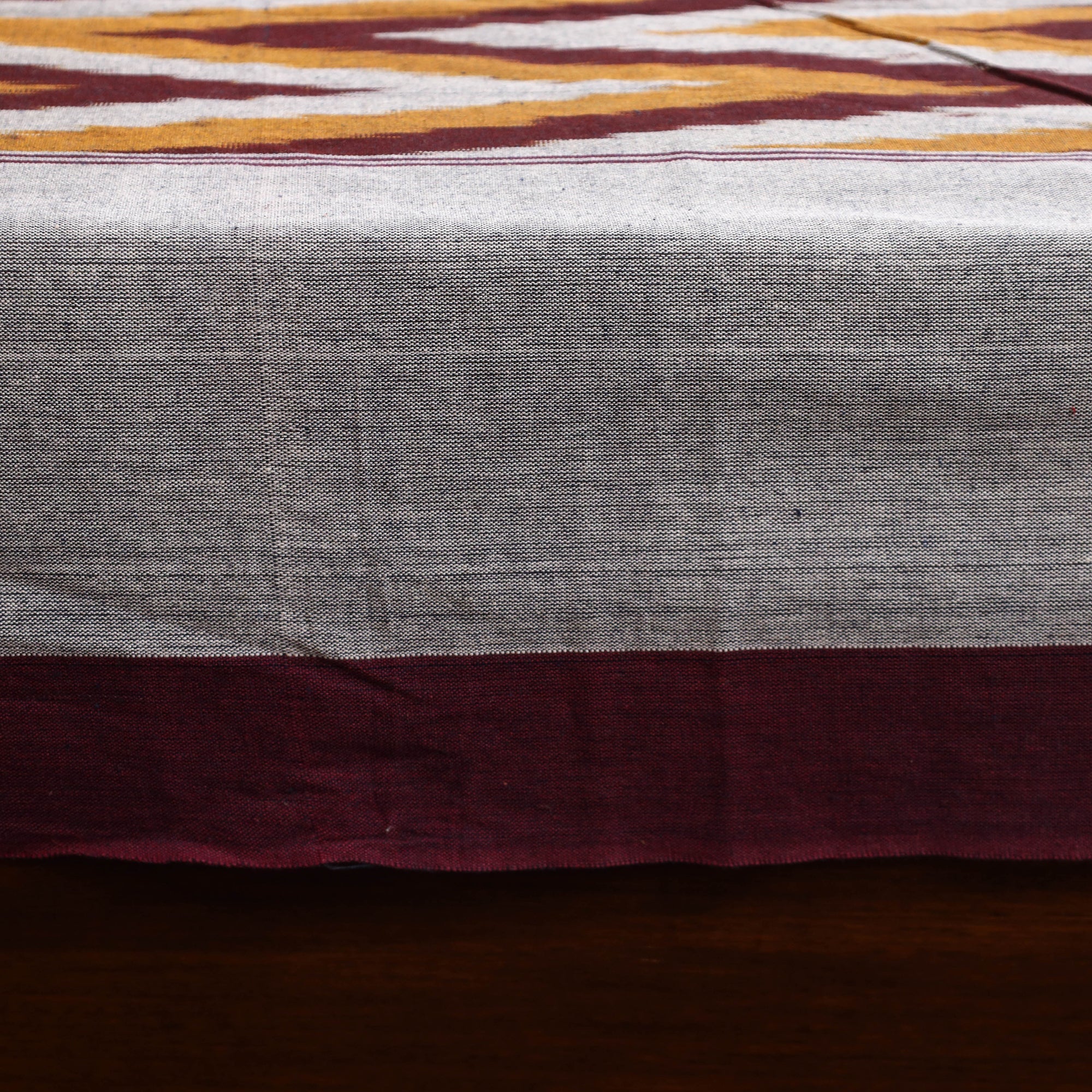Handloom cotton pochampally ikat bed sheet, crafted by skilled artisans. The Ikat technique involves resist dyeing the yarns before weaving, creating intricate and unique patterns. This single bed sheet is perfect for adding a traditional touch to your bedroom.