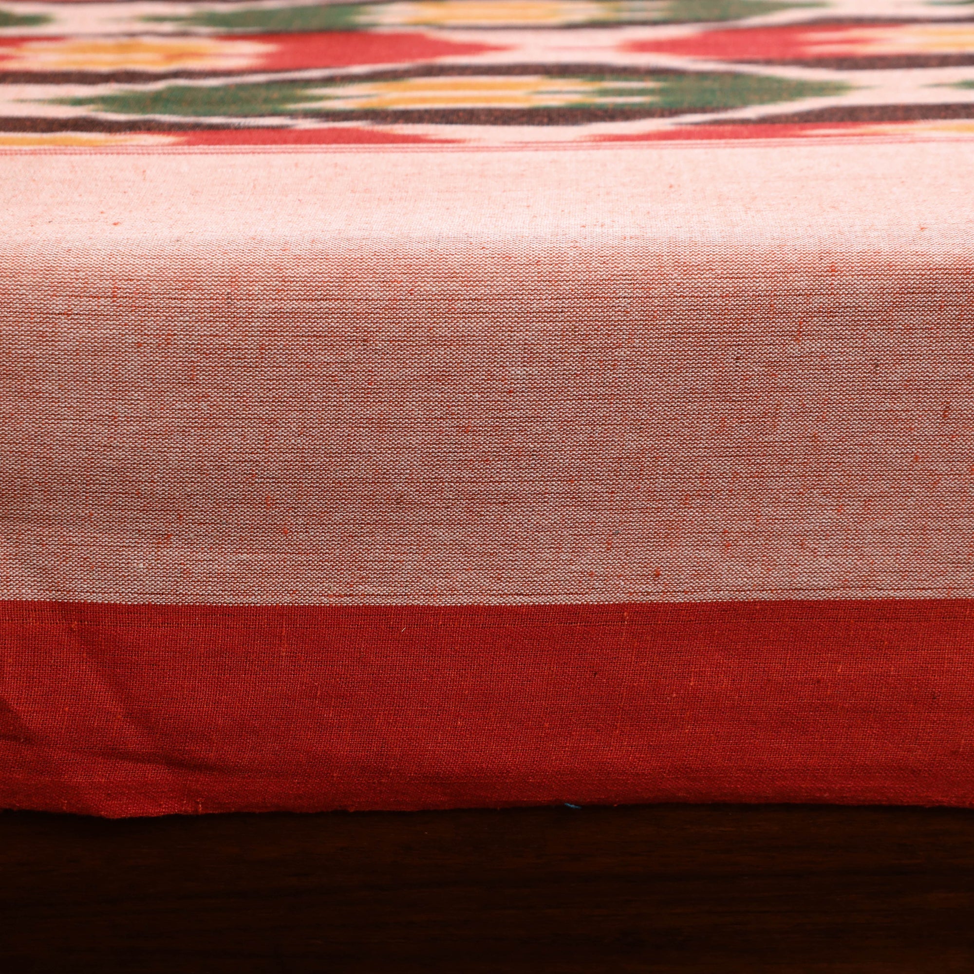 Handloom cotton pochampally ikat bed sheet, crafted by skilled artisans. The Ikat technique involves resist dyeing the yarns before weaving, creating intricate and unique patterns. This single bed sheet is perfect for adding a traditional touch to your bedroom.