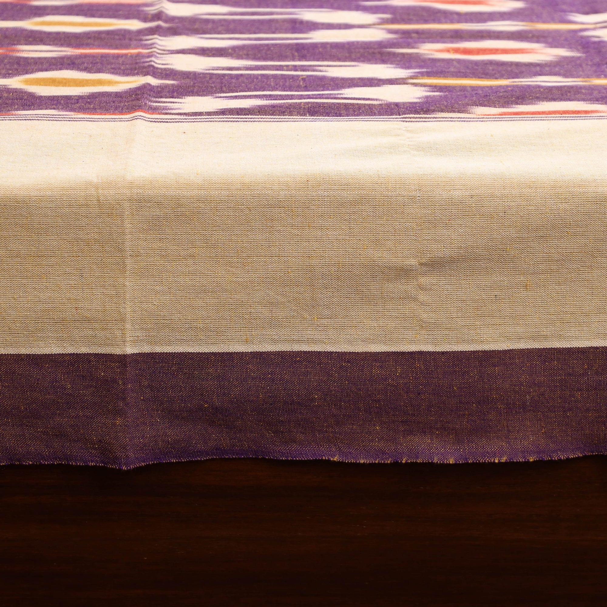 Handloom cotton pochampally ikat bed sheet, crafted by skilled artisans. The Ikat technique involves resist dyeing the yarns before weaving, creating intricate and unique patterns. This single bed sheet is perfect for adding a traditional touch to your bedroom.