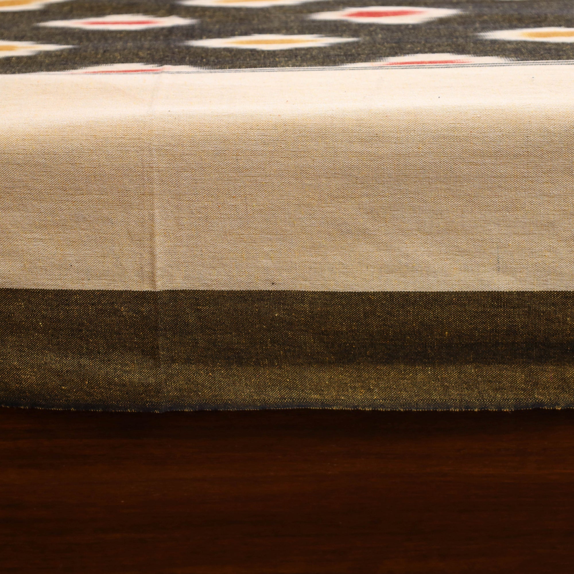 Handloom cotton pochampally ikat bed sheet, crafted by skilled artisans. The Ikat technique involves resist dyeing the yarns before weaving, creating intricate and unique patterns. This single bed sheet is perfect for adding a traditional touch to your bedroom.