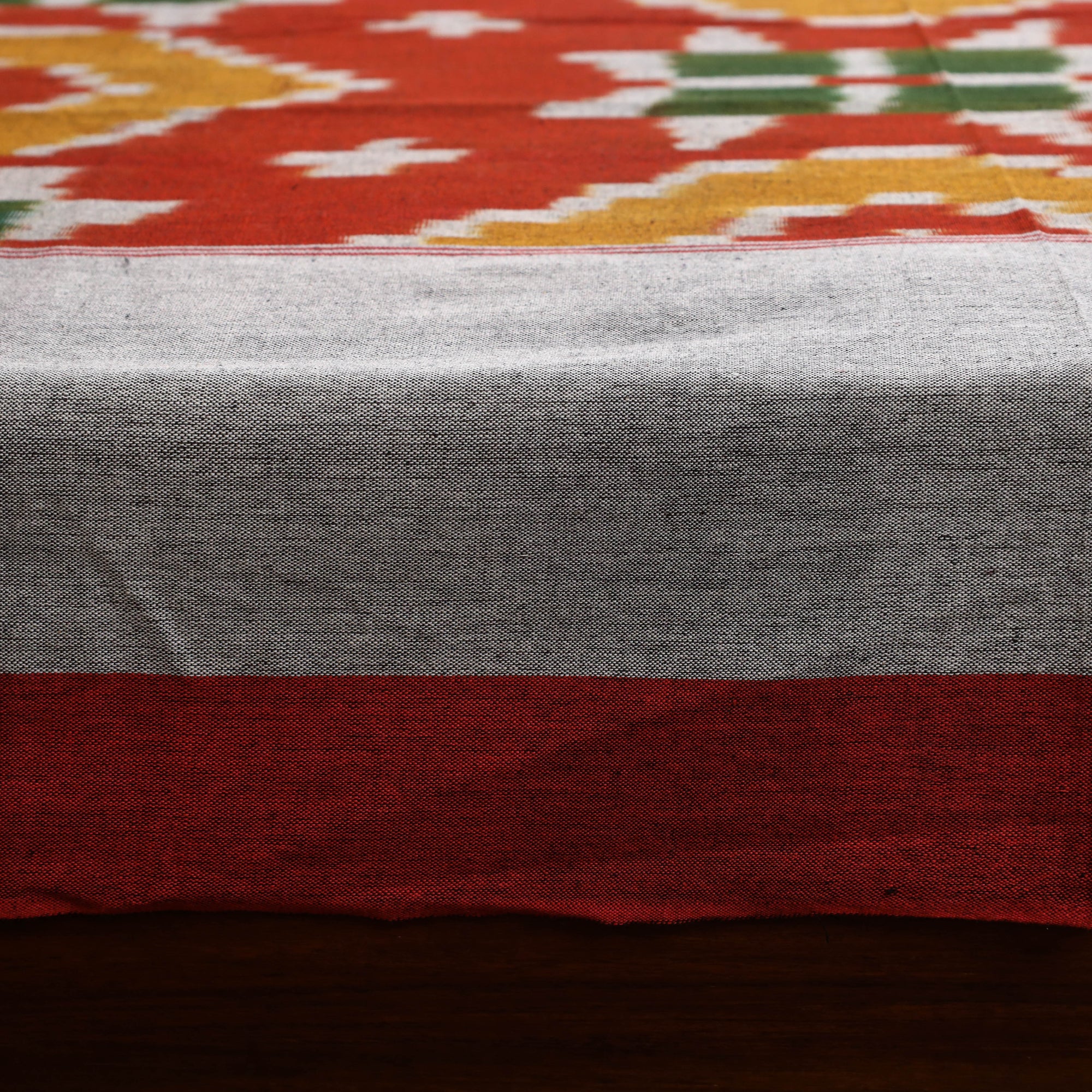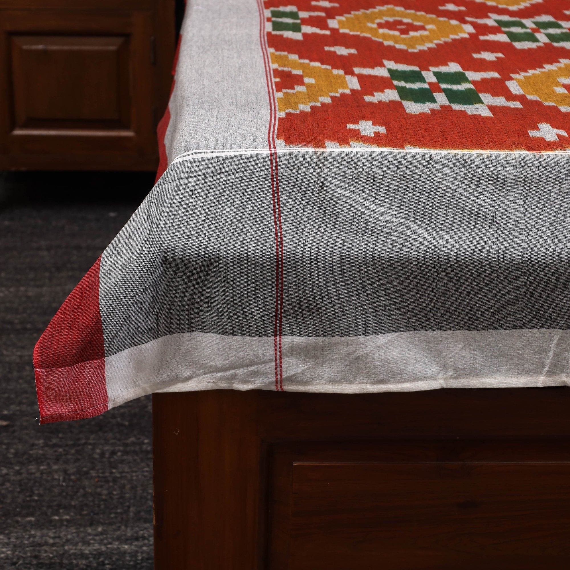 Handloom cotton pochampally ikat bed sheet, crafted by skilled artisans. The Ikat technique involves resist dyeing the yarns before weaving, creating intricate and unique patterns. This single bed sheet is perfect for adding a traditional touch to your bedroom.