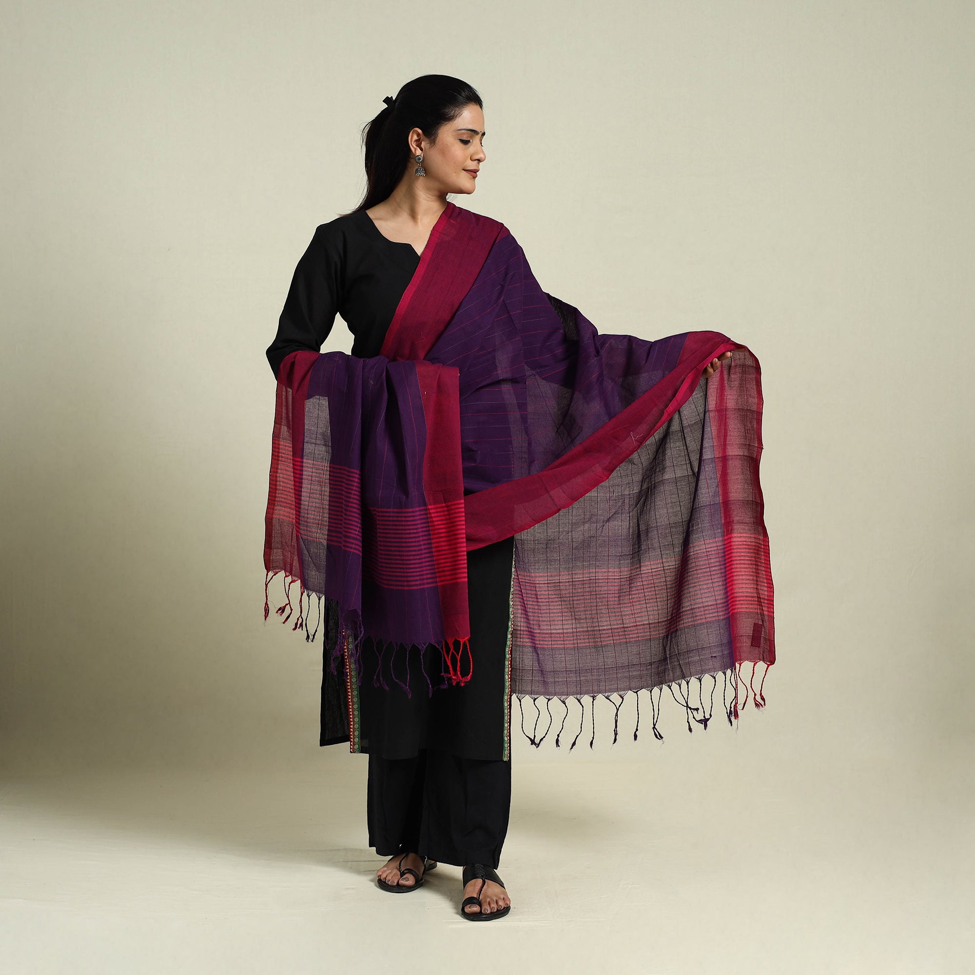 This srikakulam jamdani cotton purple dupatta beautifully showcases the rich textile heritage of Andhra Pradesh. Crafted from soft, breathable cotton, it features intricate jamdani motifs, skillfully woven using the supplementary weft technique. Delicate tassels add a graceful touch, making this dupatta a perfect blend of tradition and modern versatility. Whether paired with suits, kurtas, or dresses, it effortlessly elevates any look with its refined elegance.