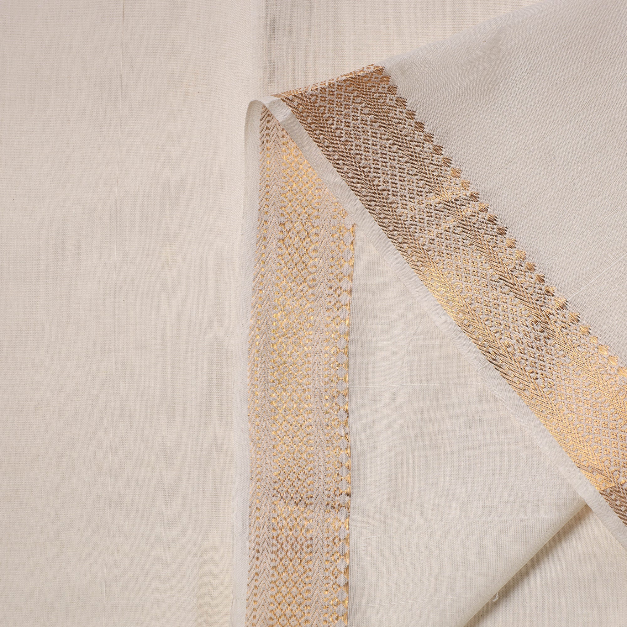 This handloom original mangalagiri cotton fabric with zari border, woven with precision by skilled artisans in Andhra Pradesh. This fabric features zari border. Known for its durability, breathability, and soft texture, this eco-friendly fabric is perfect for all seasons. It adds grace to every stitch, perfect for kurtas, dupattas, or ethnic wear.