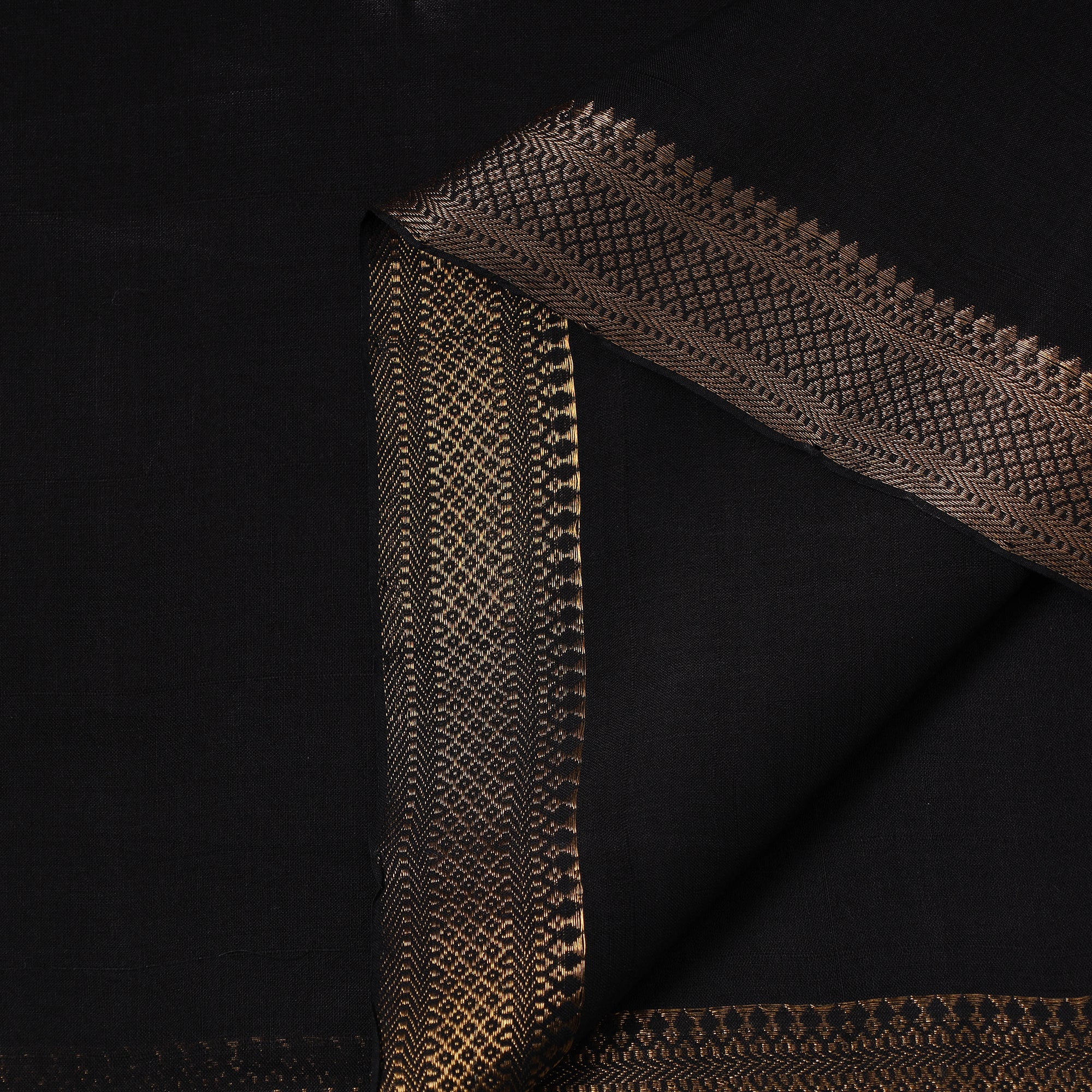• Black - Handloom Cotton Zari Border Mangalagiri Fabric 08