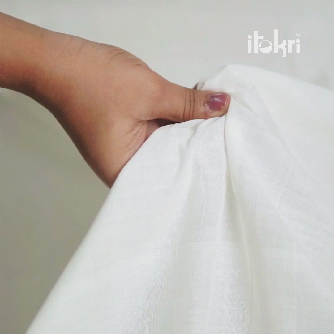 Width : 116 cm. Yarn Count : 60 x 40, GSM : 100 grams, Shrinkage : 4-5%. Transparency : 0%. Medium fine density mangalgiri cotton fabric suitable for all clothing purpose.
