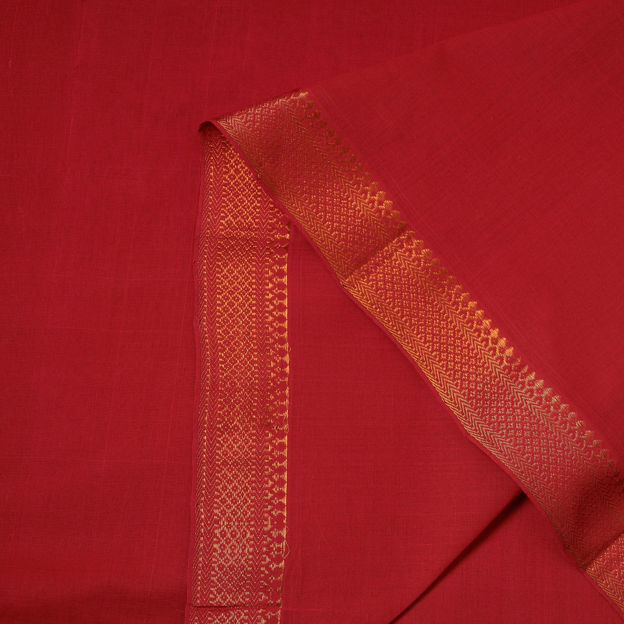 Red - Handloom Cotton Zari Border Mangalagiri Fabric 02