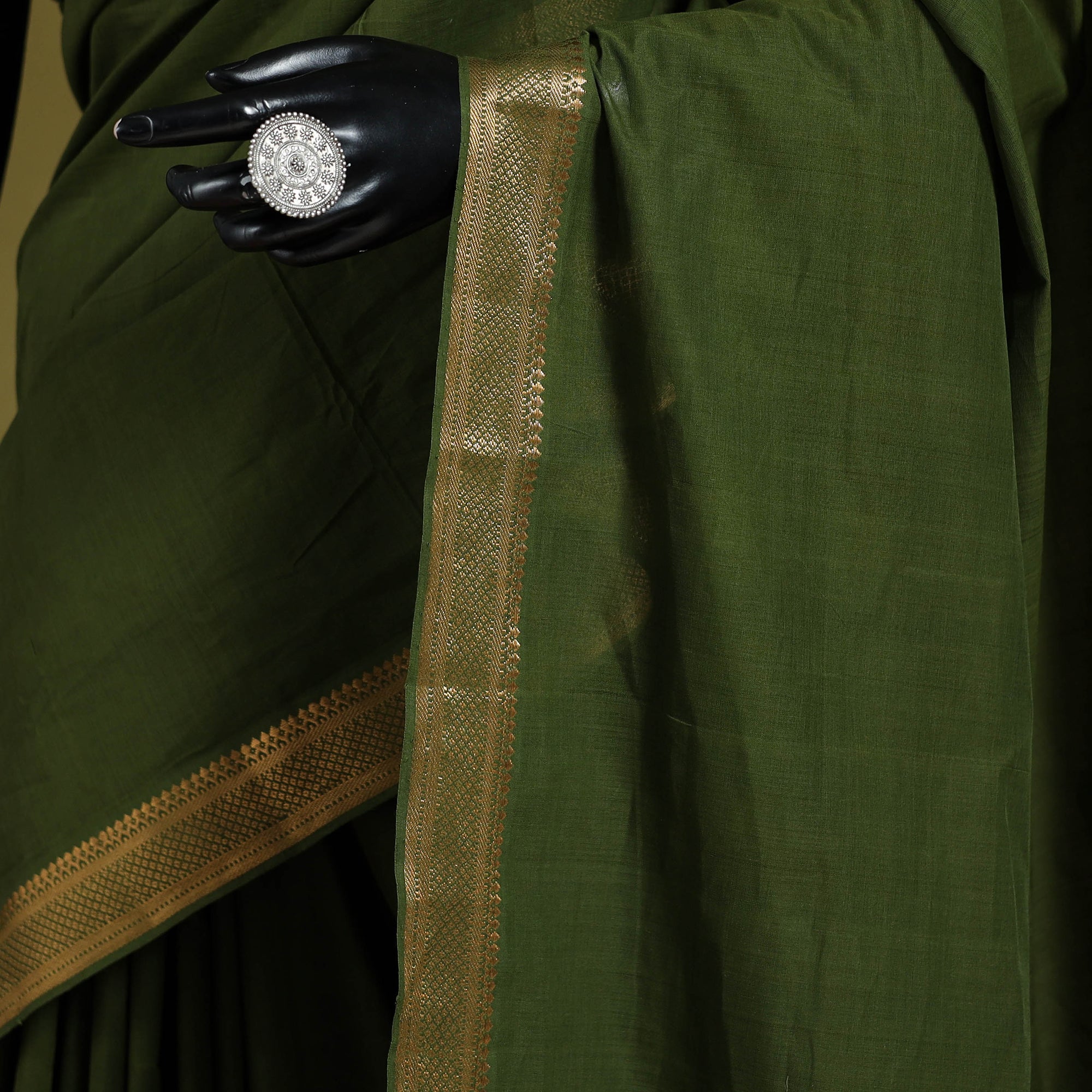This green mangalagiri cotton saree originates from Andhra Pradesh and is celebrated for its durability and fine weaving technique, often adorned with zari borders that add just the right touch of shimmer. Lightweight and breathable, this saree is perfect for everyday style, festive gatherings, or intimate occasions.