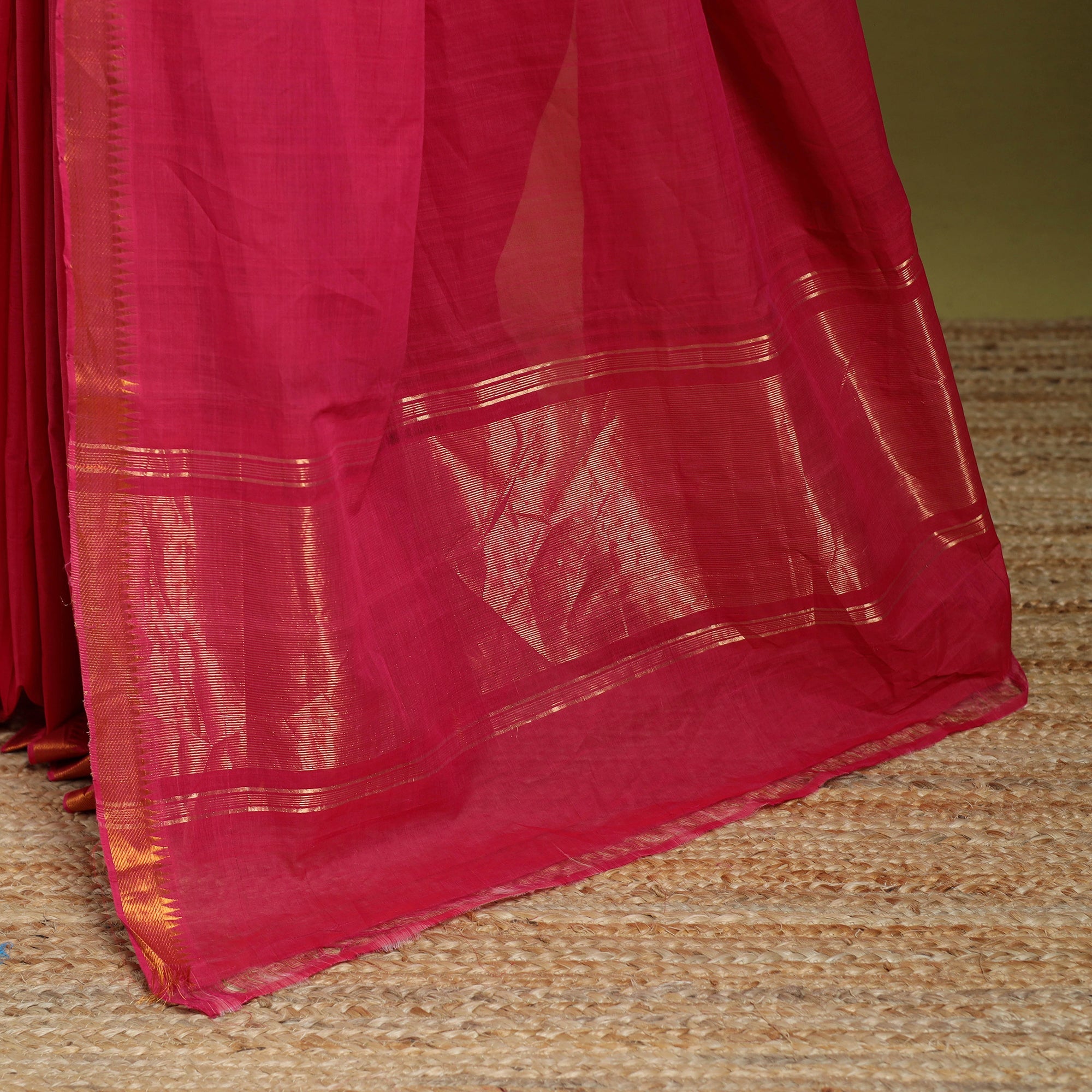 Red - Handloom Cotton Mangalagiri Fabric with Zari Border 23