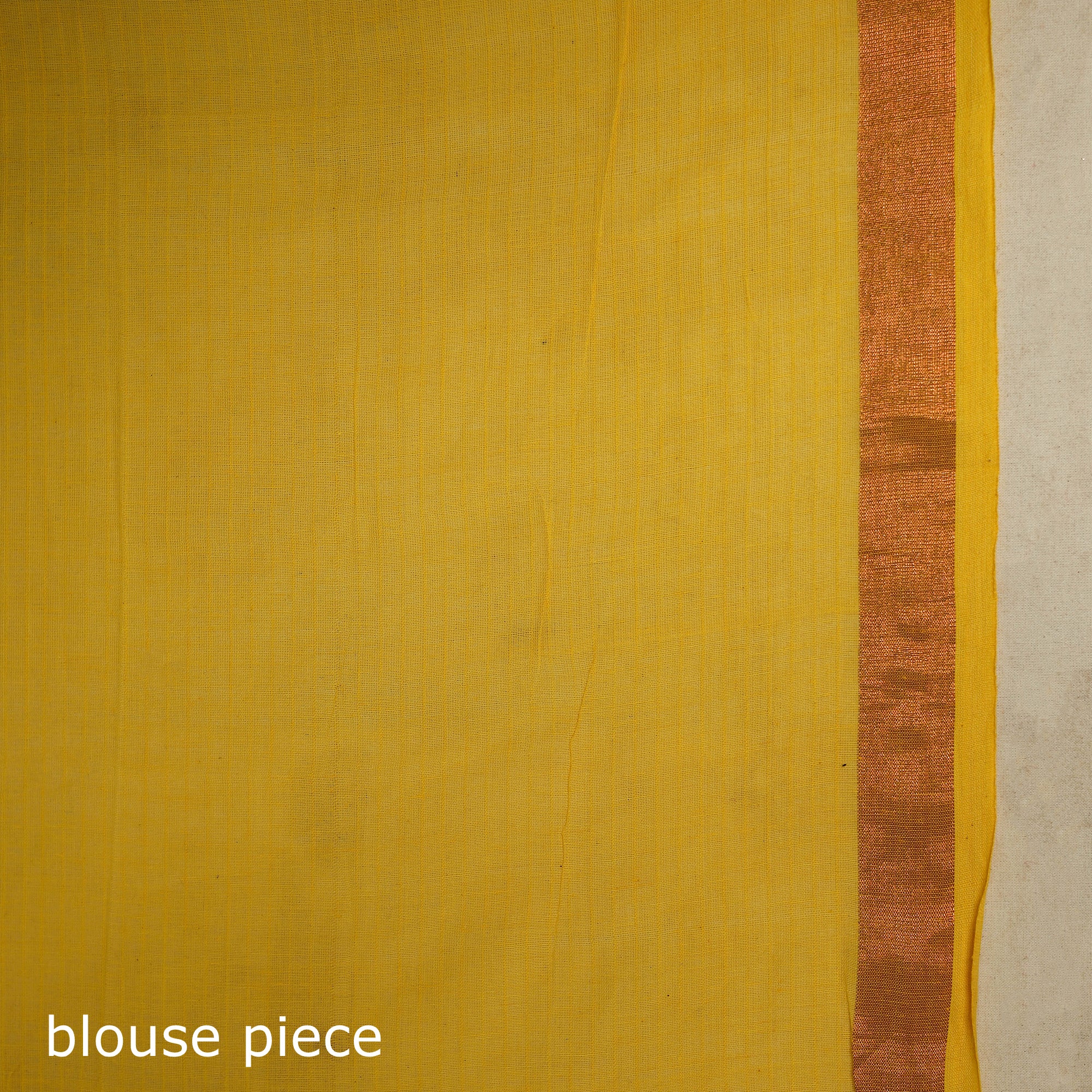This yellow phulia jamdani saree is crafted in fine cotton with shimmering zari buti motifs. The traditional extra-weft weaving of Bengal brings out designs that seem like delicate embroidery woven directly into the fabric. With metallic and dyed threads enhancing every detail, the saree carries an aura of grace and refinement. Such detailed weaving demands exceptional patience and artistry, making each piece a timeless treasure ideal for weddings, cultural festivities, special ceremonies, or refined evening wear.