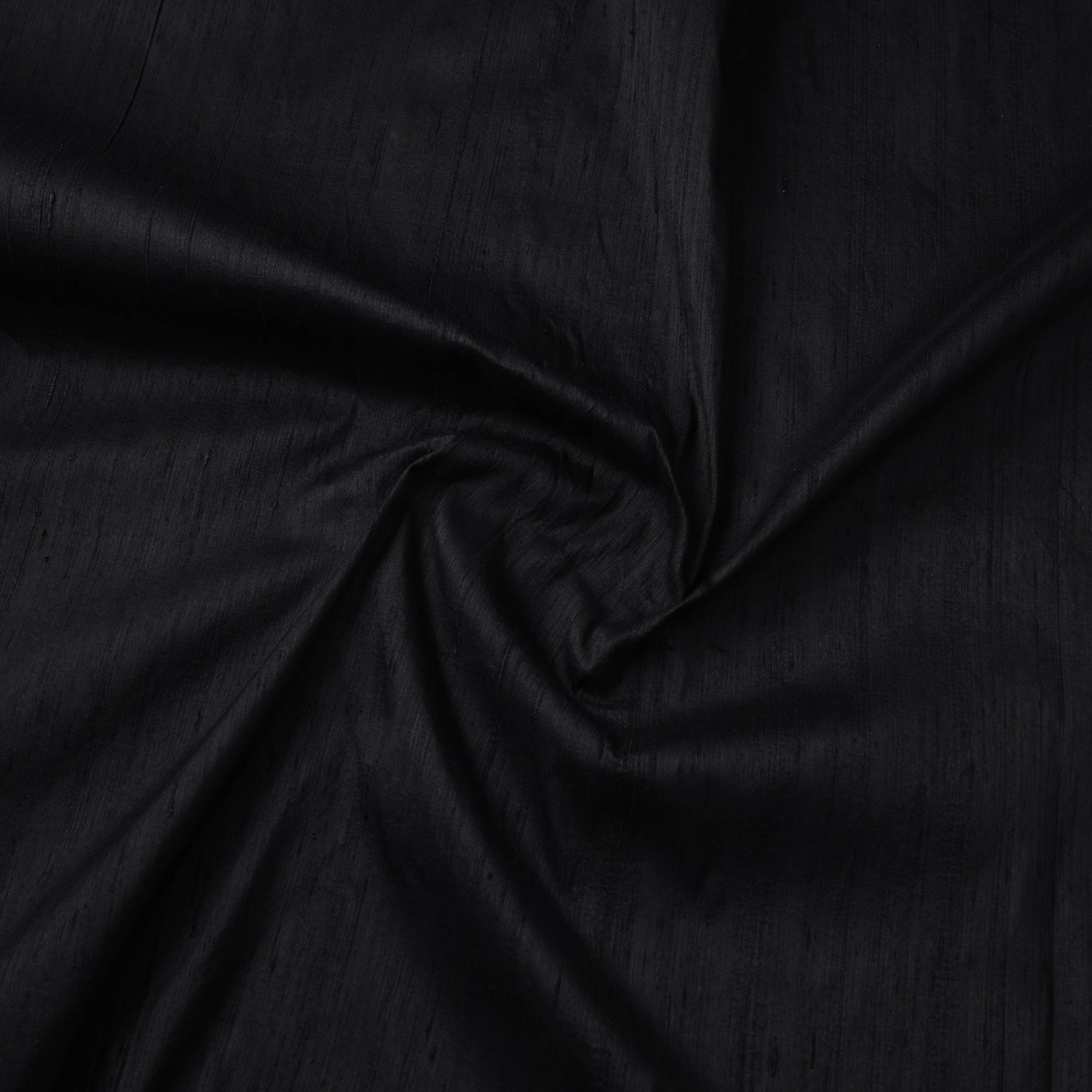 Black handloom dupion silk natural dyed plain fabric is woven from fine silk threads that lend it a smooth texture and gentle sheen. Known for its elegant drape and durability it is suitable for a variety of uses. Ideal for making sarees, blouses, kurtas, dupattas, and jackets, as well as stylish home decor pieces like cushion covers, curtains, and table runners.