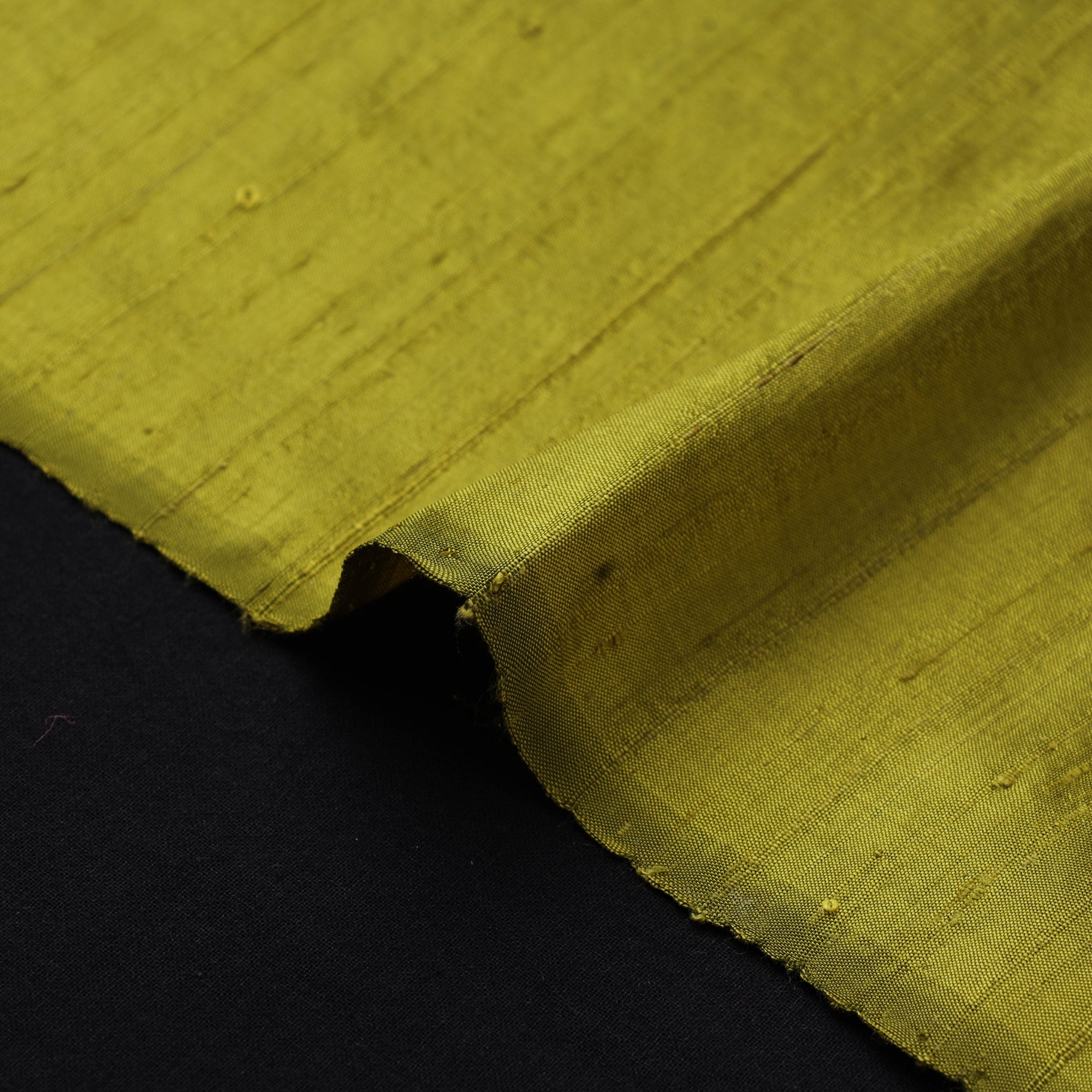 Green handloom dupion silk natural dyed plain fabric is woven from fine silk threads that lend it a smooth texture and gentle sheen. Known for its elegant drape and durability it is suitable for a variety of uses. Ideal for making sarees, blouses, kurtas, dupattas, and jackets, as well as stylish home decor pieces like cushion covers, curtains, and table runners.