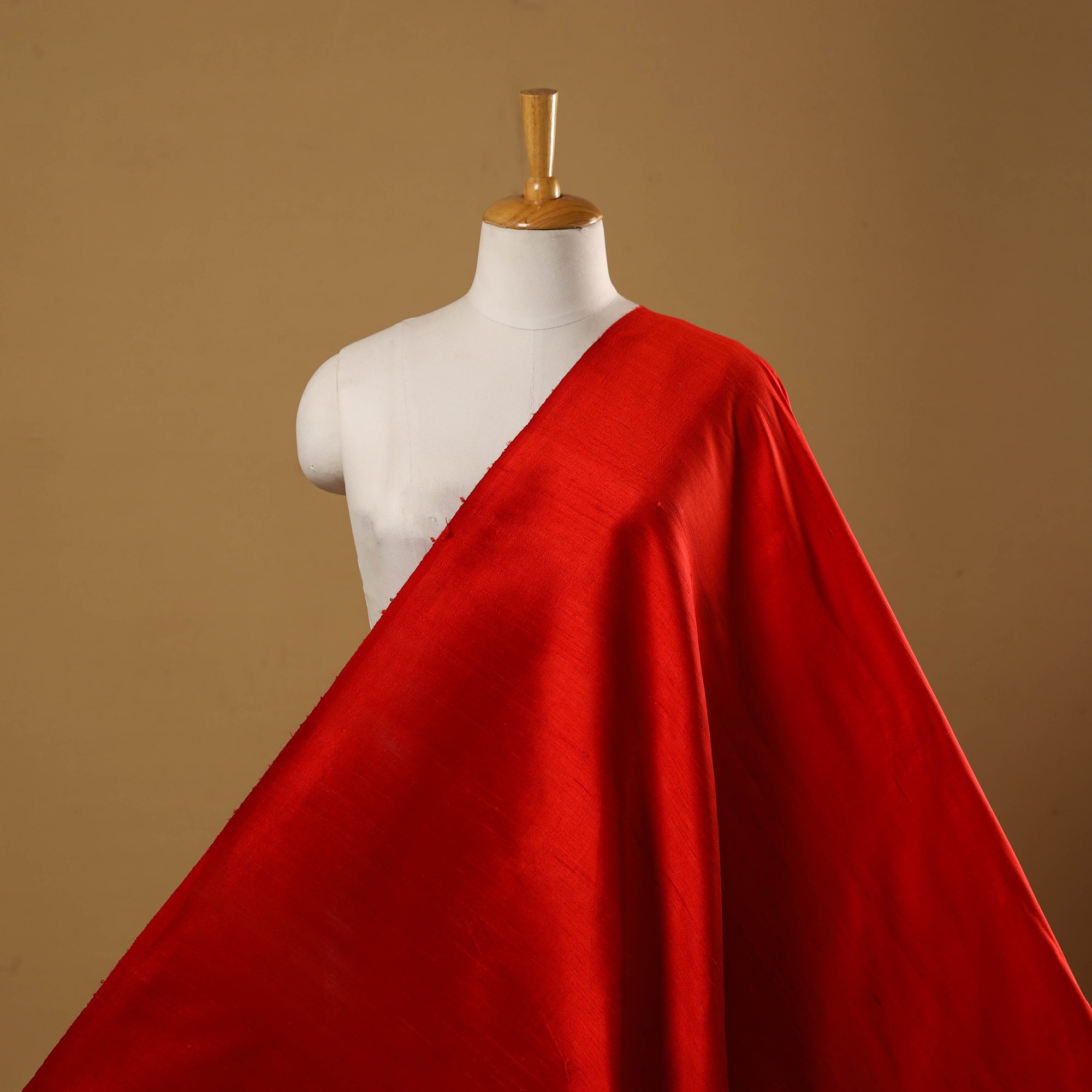 Red handloom dupion silk natural dyed plain fabric is woven from fine silk threads that lend it a smooth texture and gentle sheen. Known for its elegant drape and durability it is suitable for a variety of uses. Ideal for making sarees, blouses, kurtas, dupattas, and jackets, as well as stylish home decor pieces like cushion covers, curtains, and table runners.
