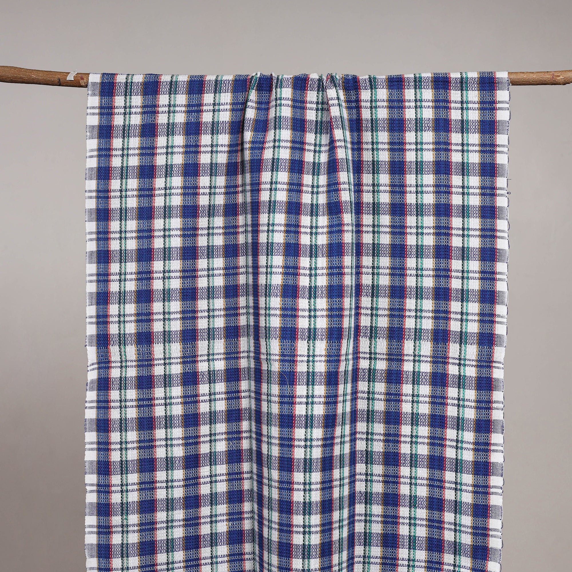 This blue check bath towel, crafted from fine handloom cotton, is soft, breathable, and highly absorbent. Lightweight yet durable, it dries quickly and stays gentle on the skin, making it perfect for everyday use. Woven by skilled artisans, it provides better breathability and comfort compared to mill-made towels