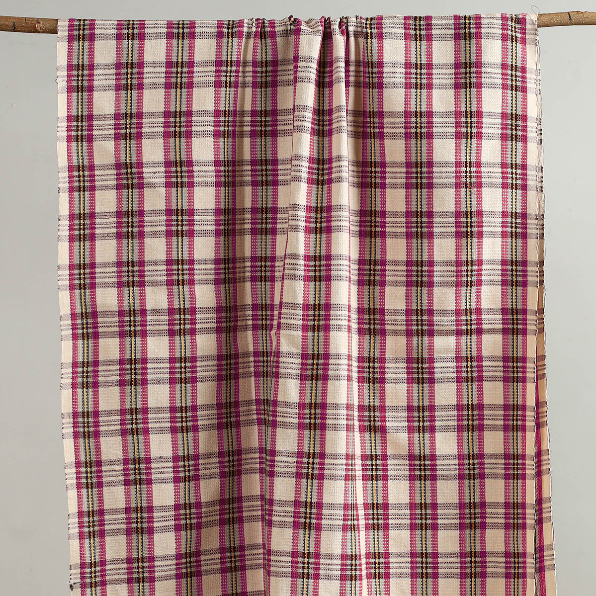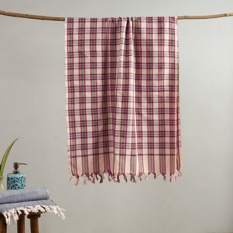 Made from fine handloom cotton, this pink checks bath towel is soft, lightweight, and highly absorbent. Woven by skilled artisans, it offers better breathability and comfort compared to mill-made towels. Ideal for everyday use, it dries quickly and stays gentle on the skin.