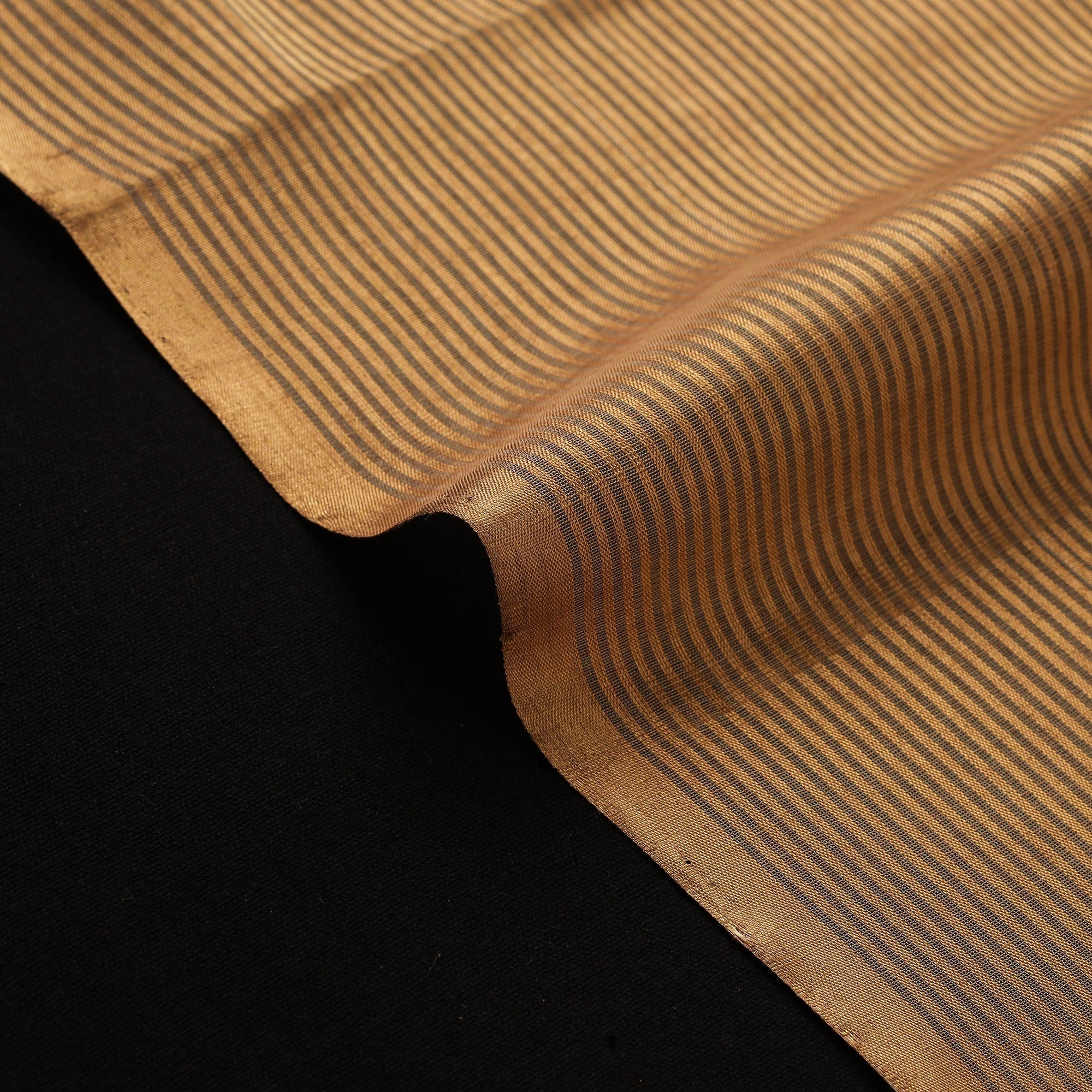Brown pure handloom full tissue gold & silver zari stripes chanderi fabric is woven by master artisan Rauph Khan from Madhya Pradesh. Originating from the historic town of Chanderi, this weave is known for its lightweight texture and sheer elegance. Handloom weaving in chanderi combines silk and mercerised cotton threads to create a fabric that feels airy yet refined. Perfect for crafting kurtas, dresses, blouses, skirts, dupattas, curtains, cushion covers and more.