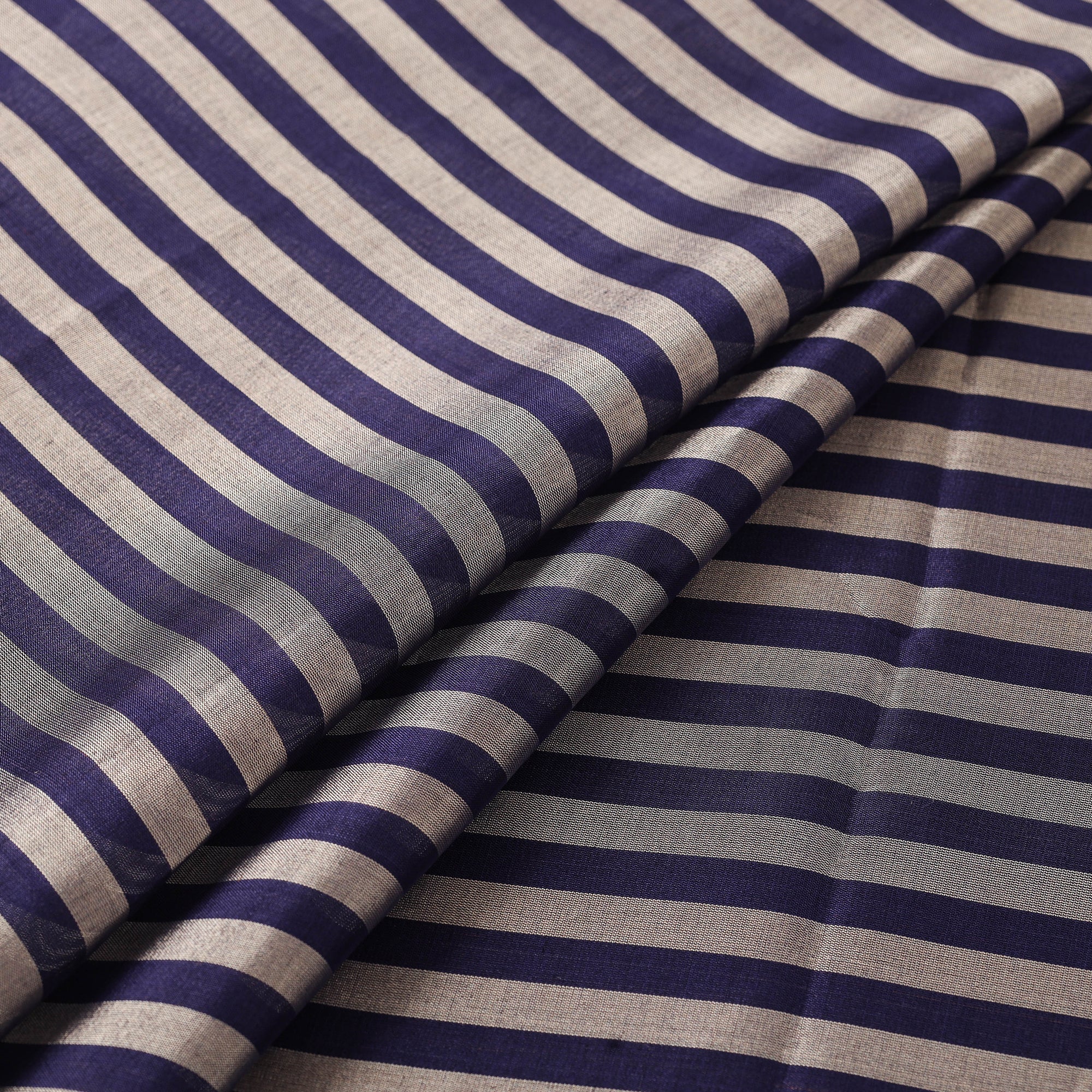 Purple pure handloom full tissue silver zari stripes chanderi fabric is woven by master artisan Rauph Khan from Madhya Pradesh. Originating from the historic town of Chanderi, this weave is known for its lightweight texture and sheer elegance. Handloom weaving in chanderi combines silk and mercerised cotton threads to create a fabric that feels airy yet refined. Perfect for crafting kurtas, dresses, blouses, skirts, dupattas, curtains, cushion covers and more.