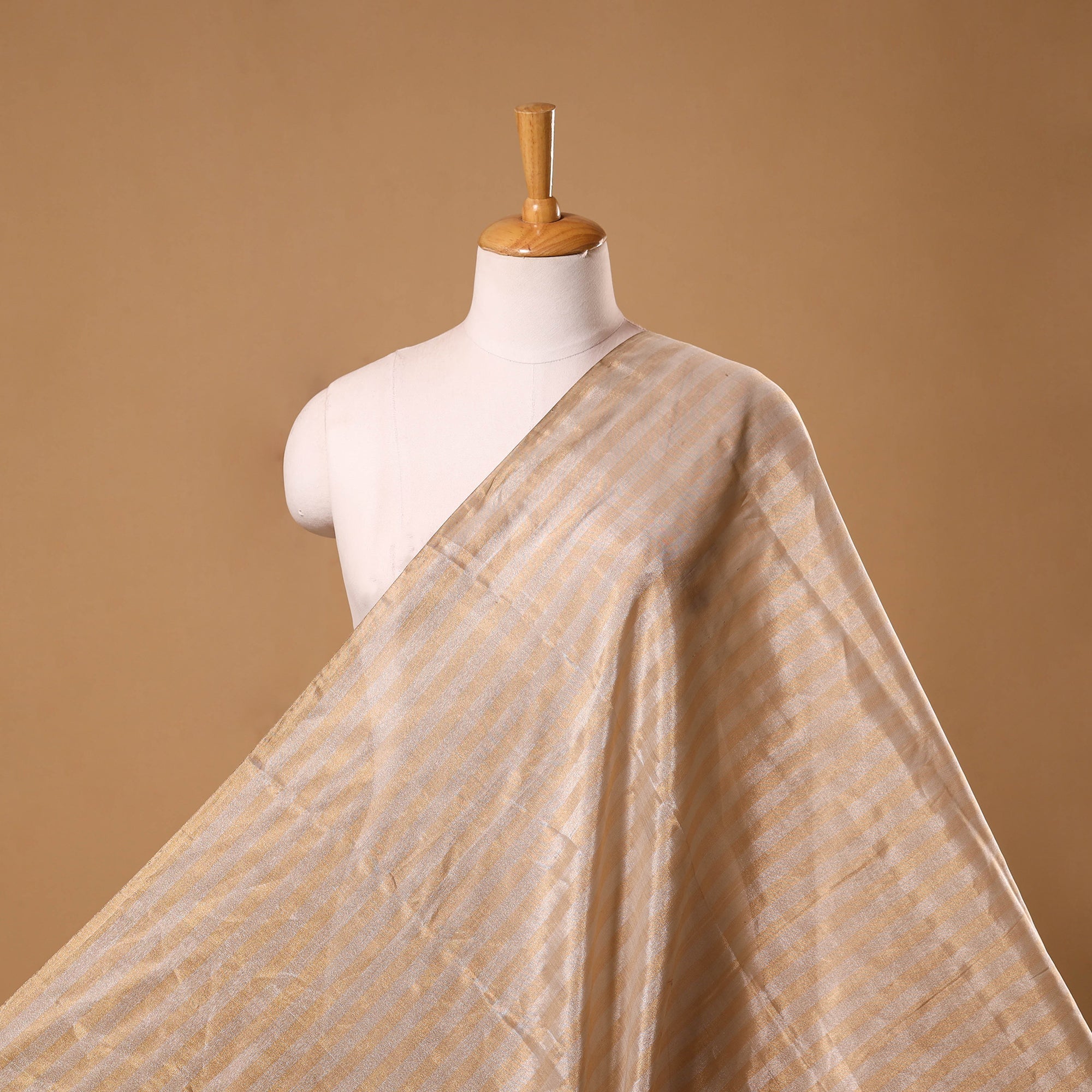 Beige - Handloom Full Tissue Silver Zari Stripes Chanderi Silk Fabric 29