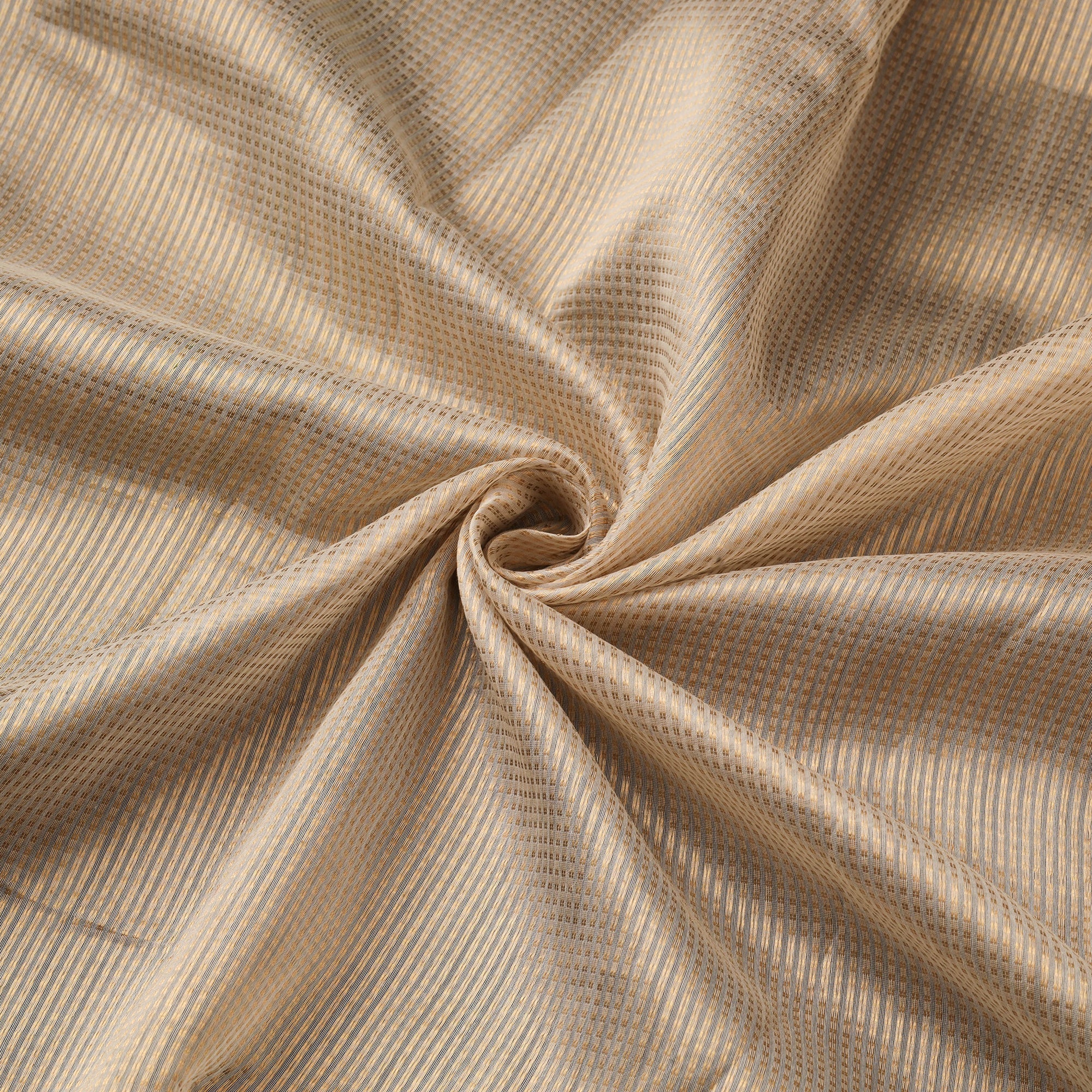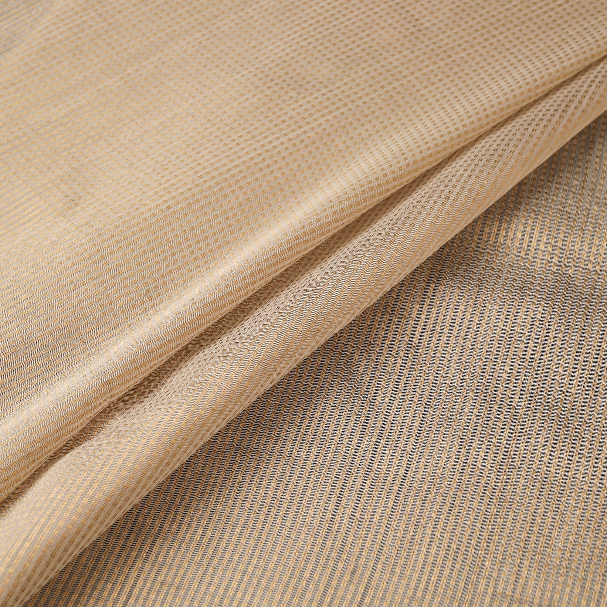 Beige pure handloom gold zari work chanderi fabric is woven by master artisan Rauph Khan from Madhya Pradesh. Originating from the historic town of Chanderi, this weave is known for its lightweight texture and sheer elegance. Handloom weaving in chanderi combines silk and mercerised cotton threads to create a fabric that feels airy yet refined. Perfect for crafting kurtas, dresses, blouses, skirts, dupattas, curtains, cushion covers and more.