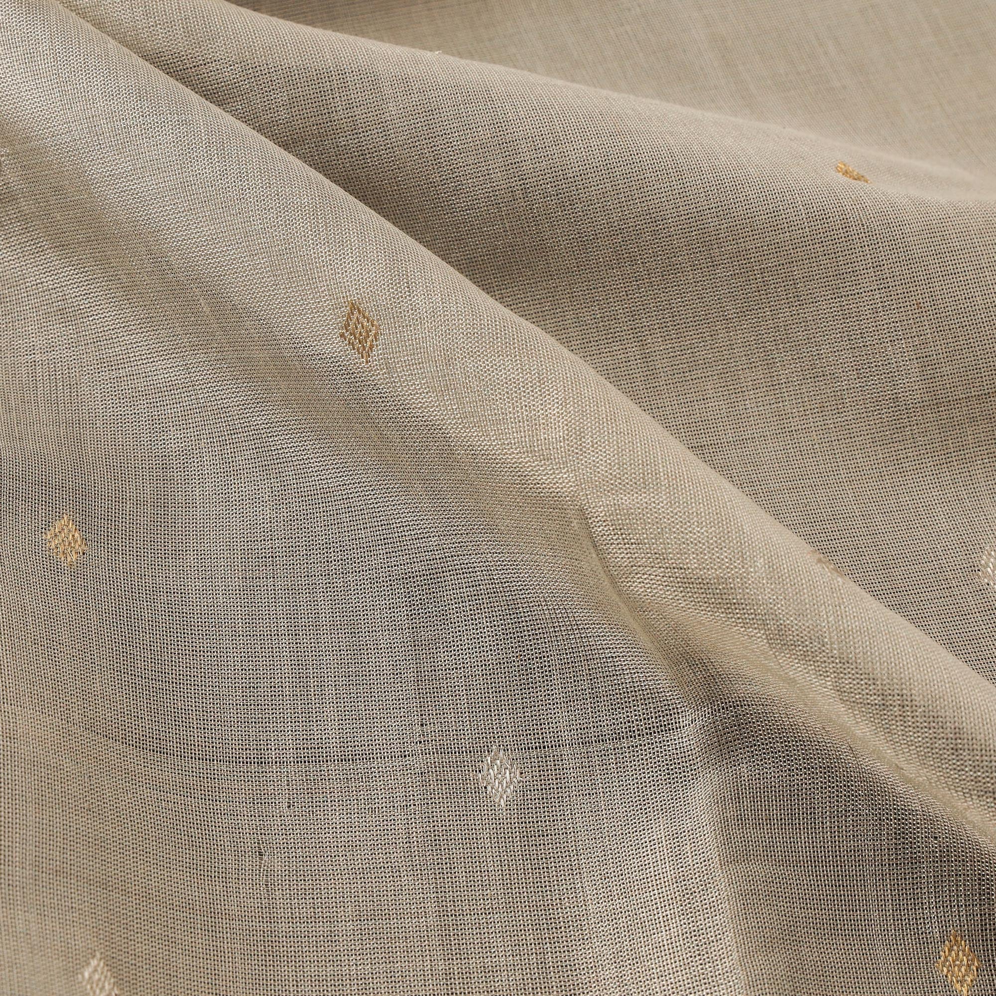 Grey handloom heavy tissue silver zari pure chanderi silk buti fabric woven by master artisan Sagir Ahmed from Madhya Pradesh. Originating from the historic town of chanderi this weave is known for lightweight texture and sheer elegance.